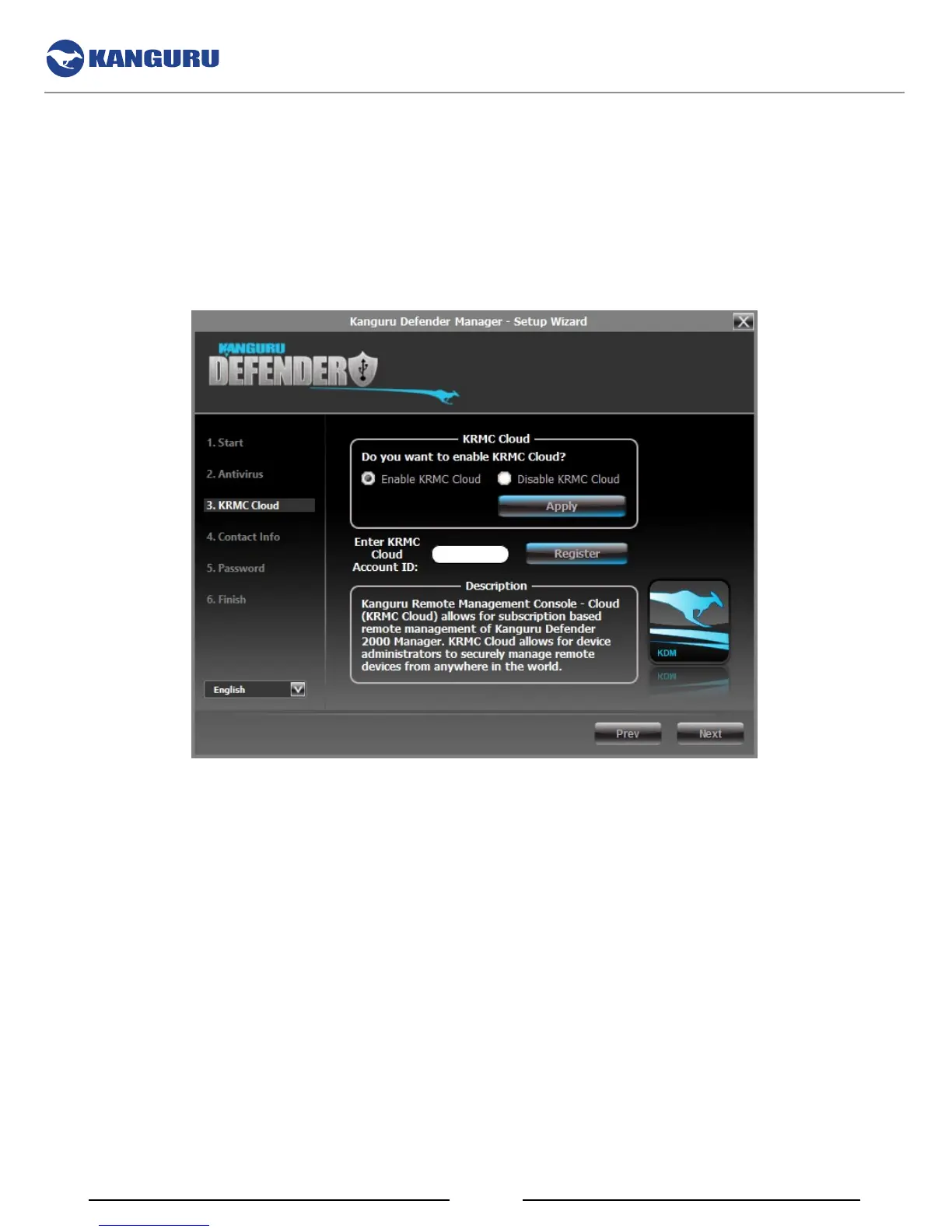account but do not remember your KRMC Cloud Account ID, please contact Kanguru Technical Support.