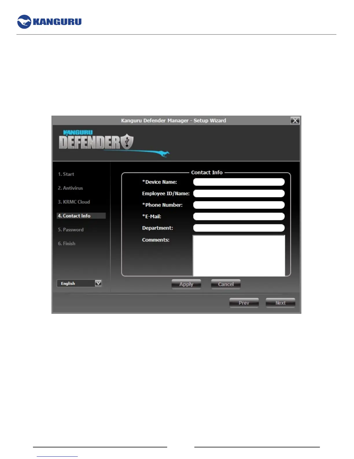 If you chose to manage your drive using KRMC Cloud, then the information entered in the Contact Info