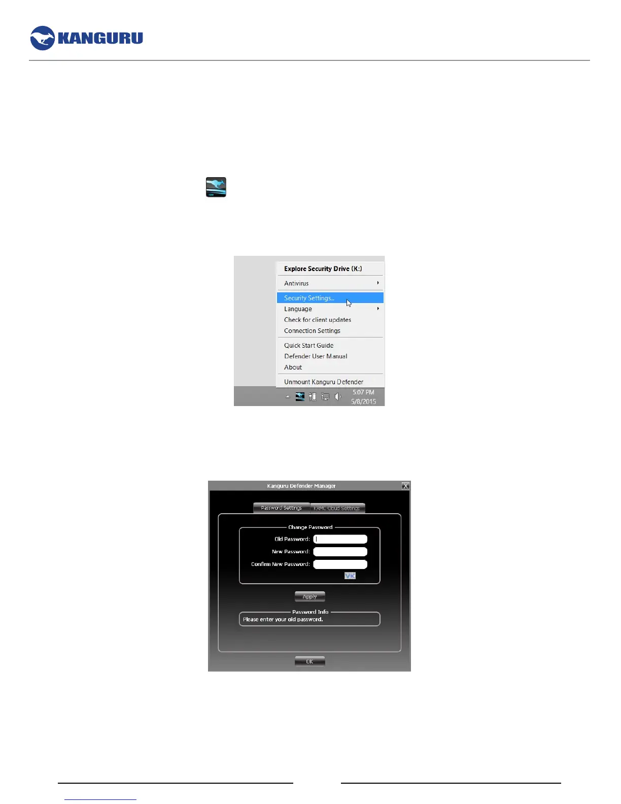 Note: Linux users must right-click on the KDM icon in the task bar.