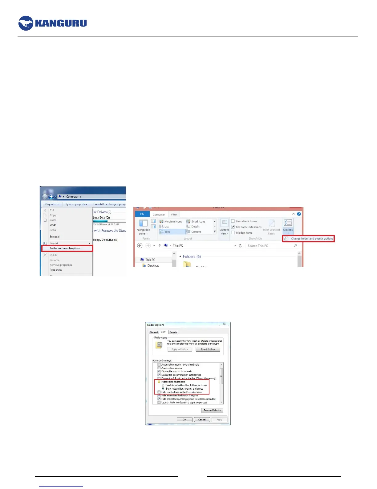○ Windows 7 : Open My Computer, click on the Organize tab and then select Folder and