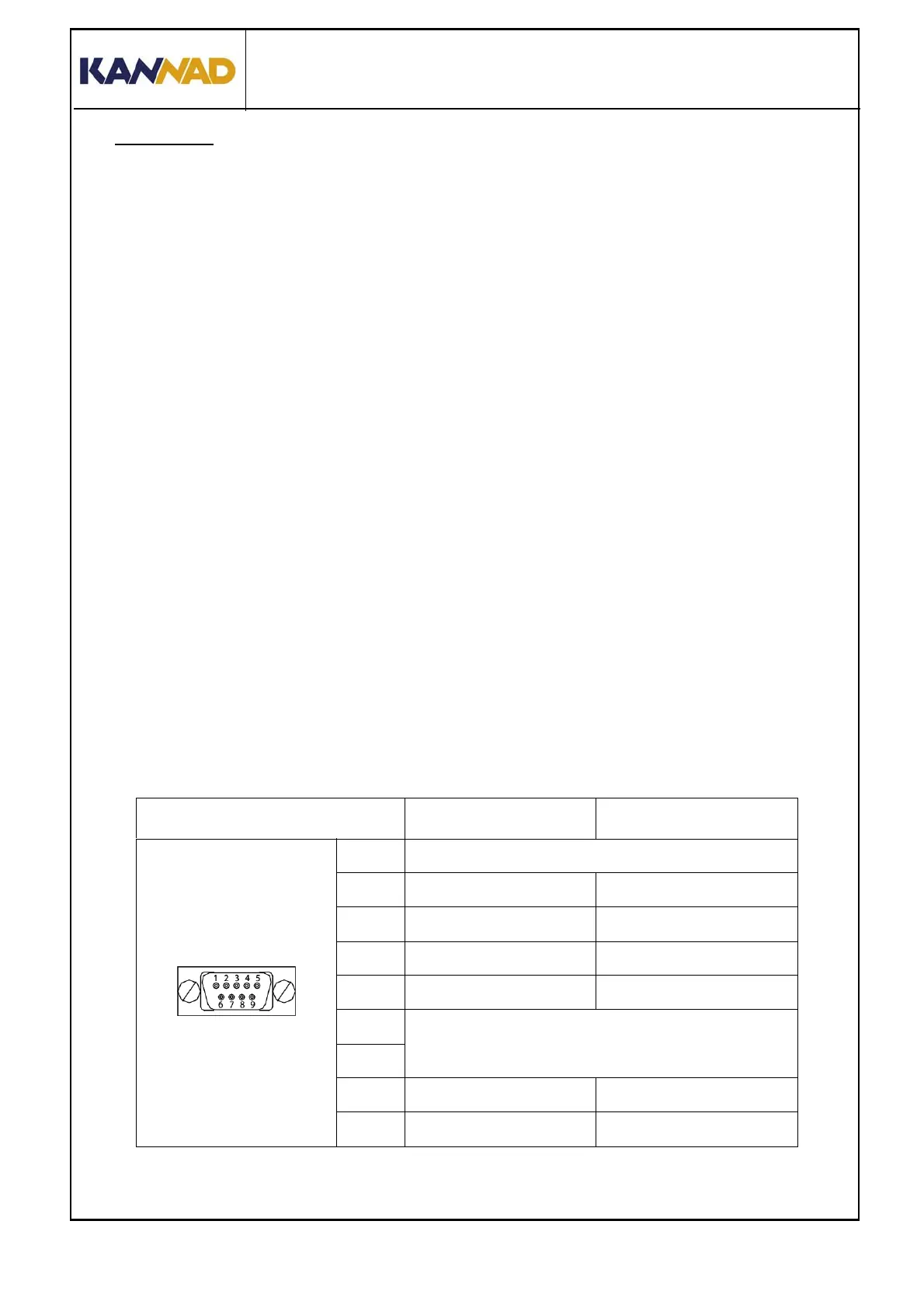 Table 2: J1, D-SUB 9 Pts Male Pin-out