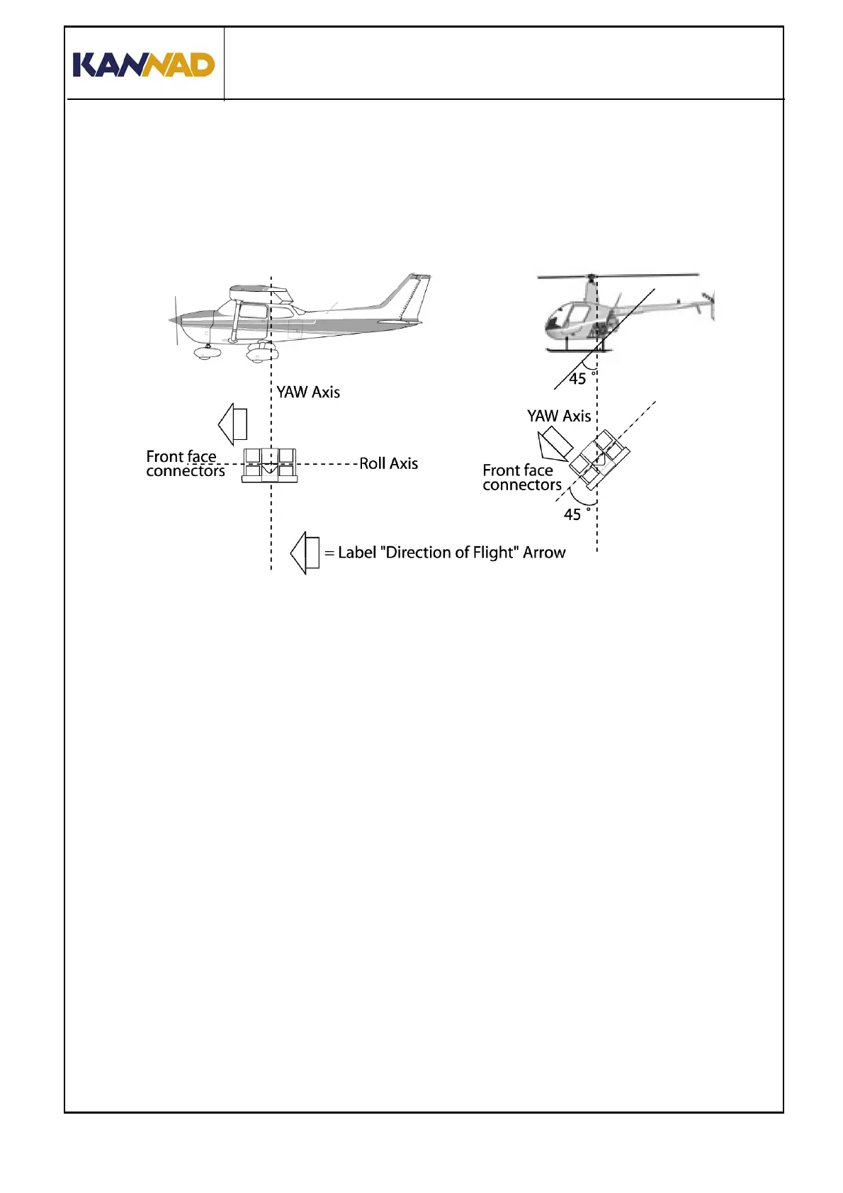 • and with "Flight direction" arrow towards the front of the helicopter.