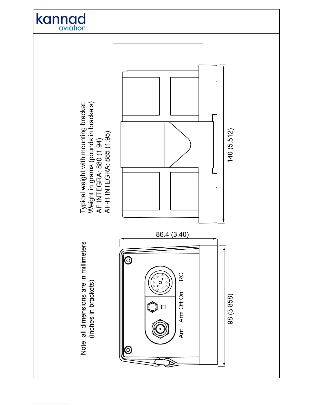 Kannad AF INTEGRA - SCHEMATICS AND DIAGRAMS; Outline Dimensions and Weight