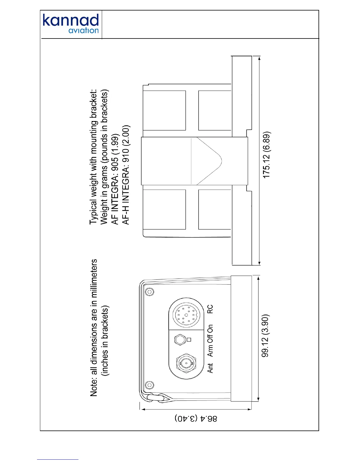 Kannad AF INTEGRA - Outline Dimensions and Weight with Universal Mounting Bracket