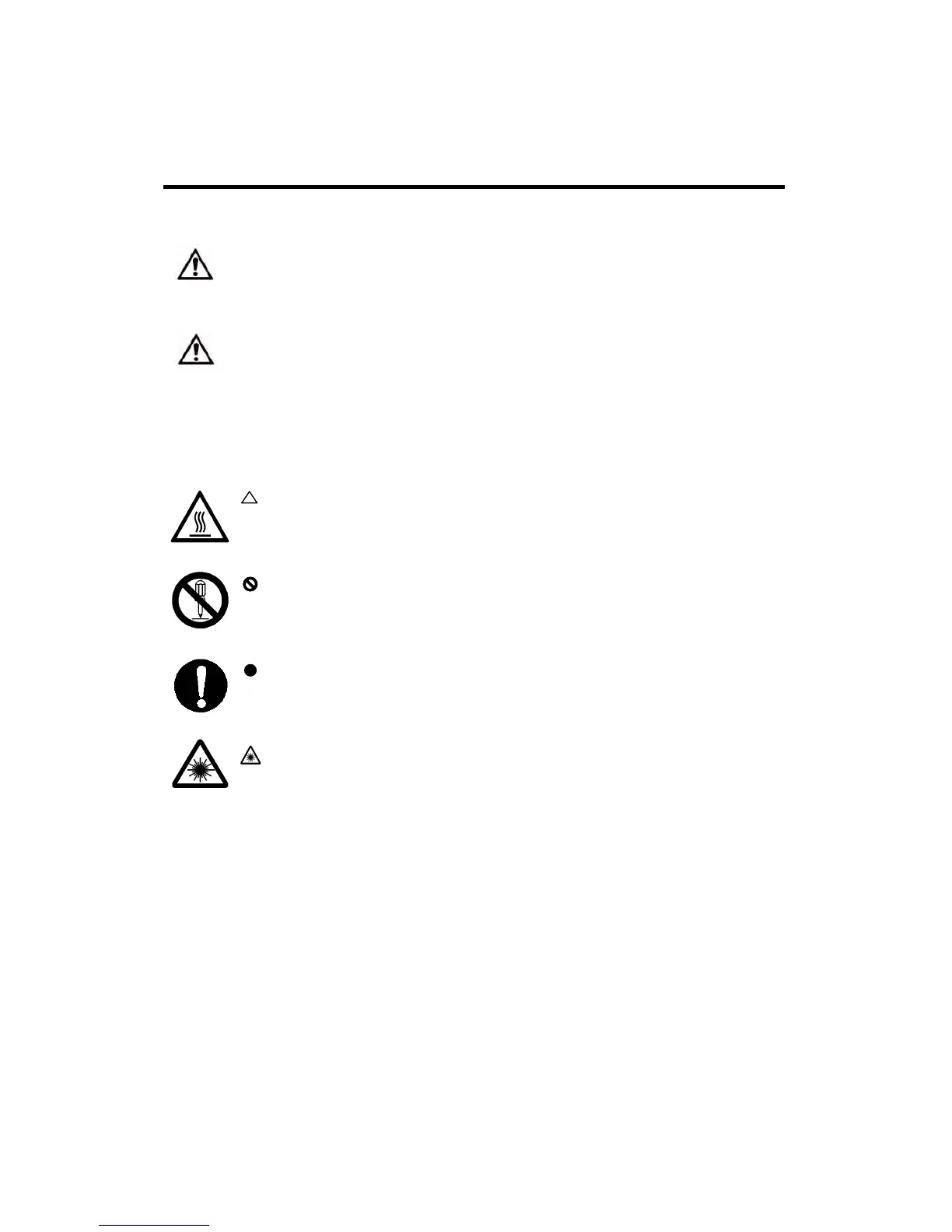 subject of each caution is illustrated inside the triangle (e.g., high temperature