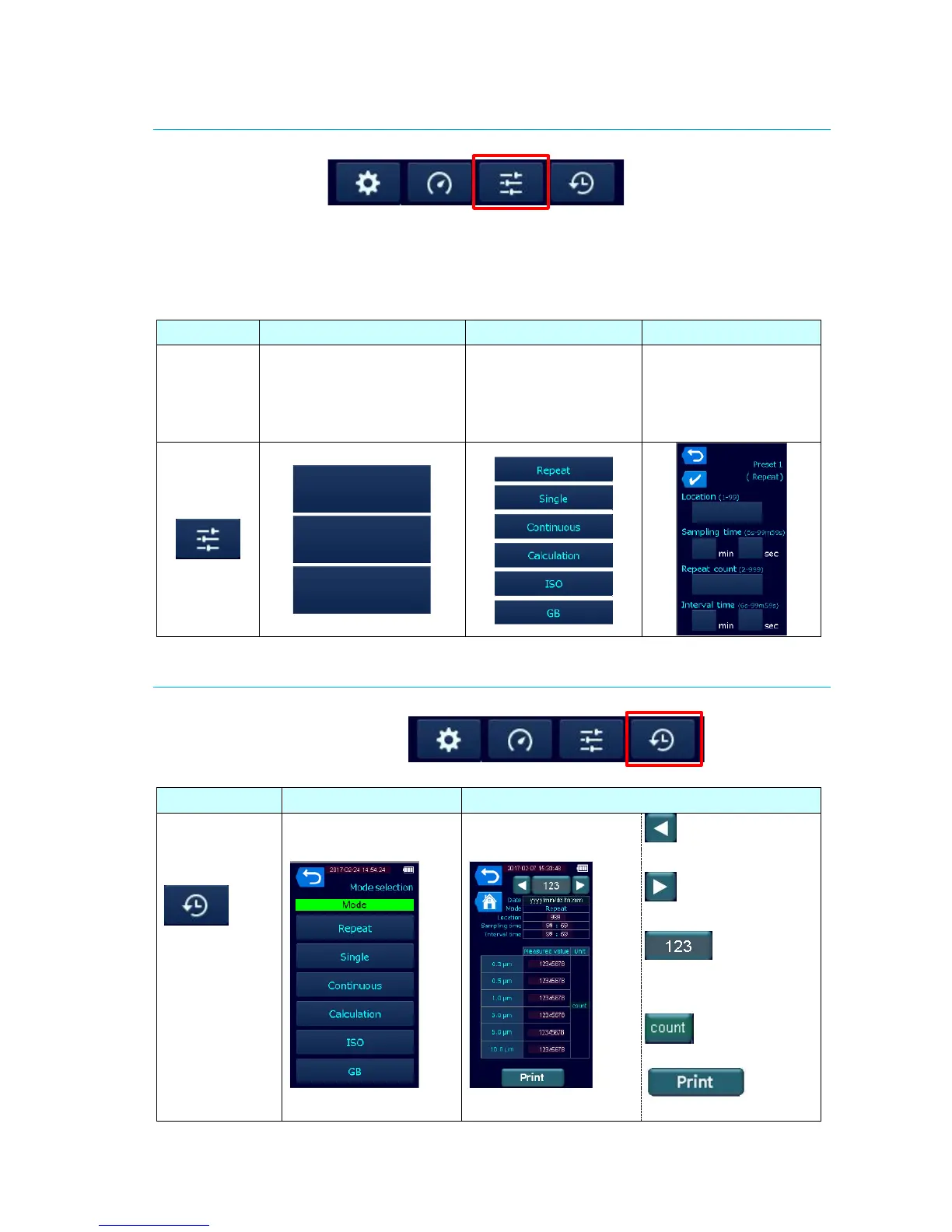 Select [Preset] in the Main screen to set and select measurement conditions.