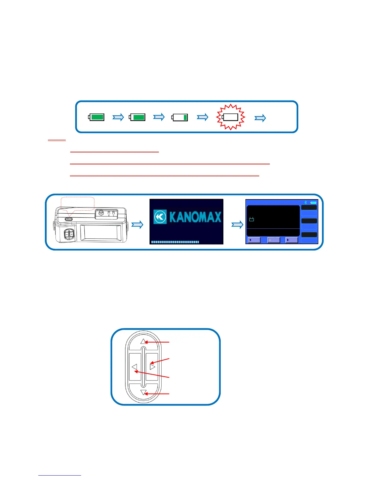 Press button【POWER】for 2 seconds for start On, displaying “ KANOMAX” then enter into the testing