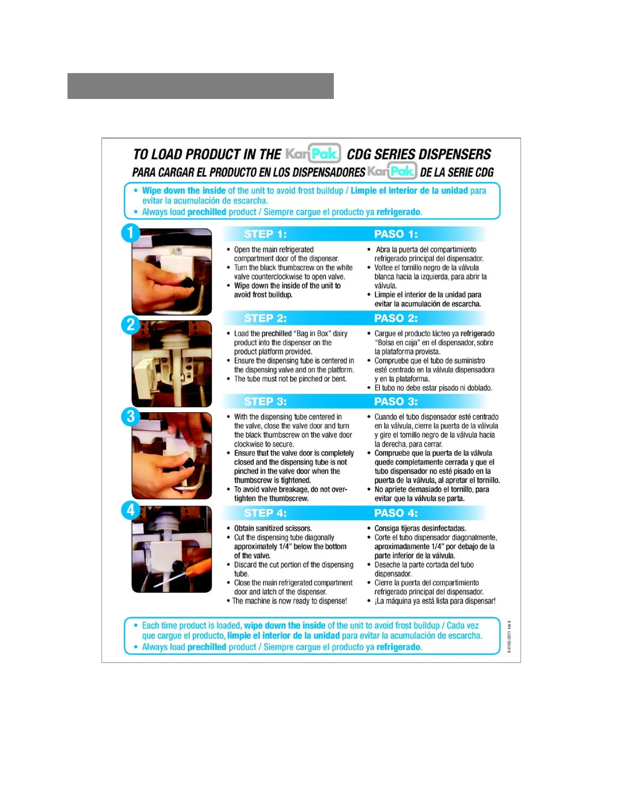 Product must be pre-chilled prior to loading it into the dispenser. Product temperature