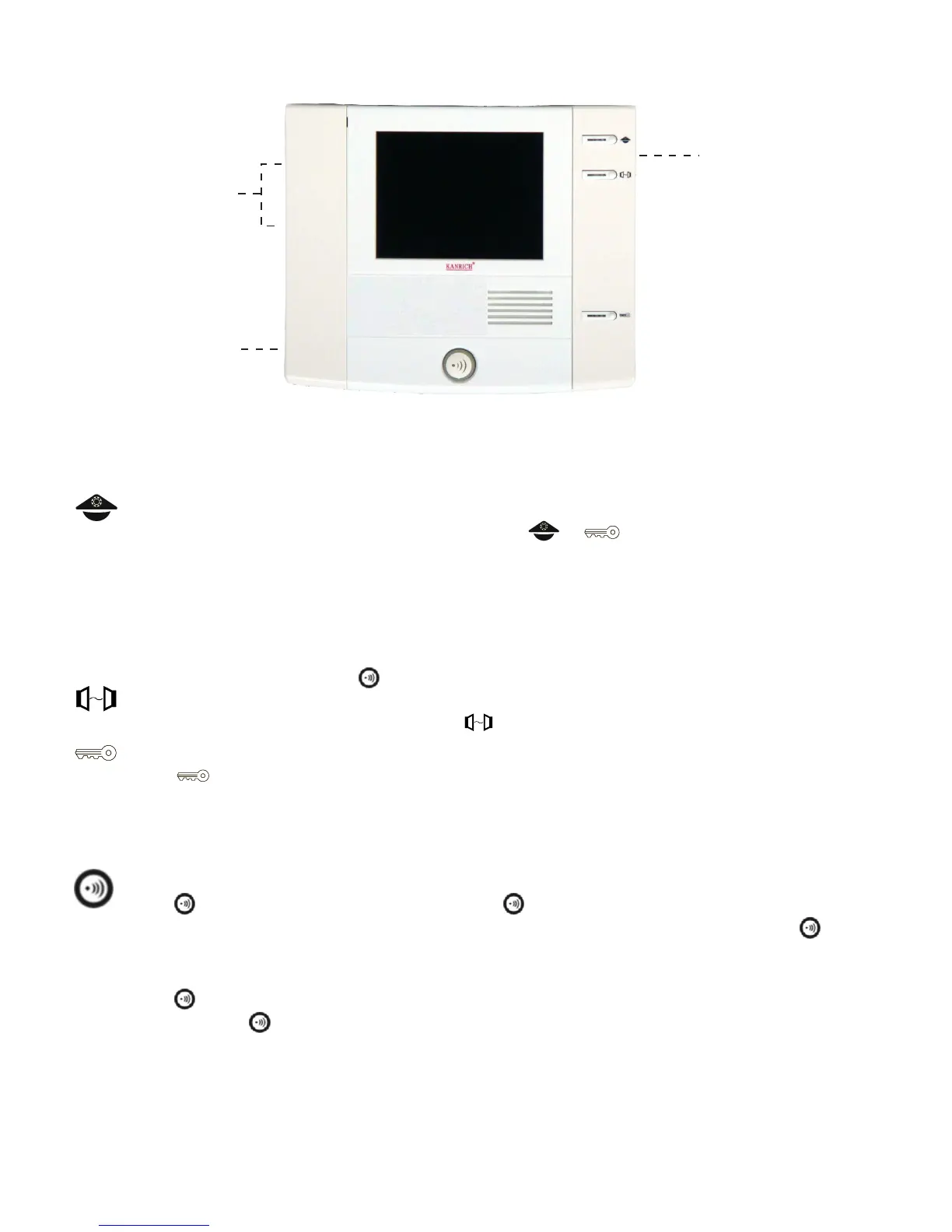 Press to start monitor screen and monitor door camera situation and also to talk with