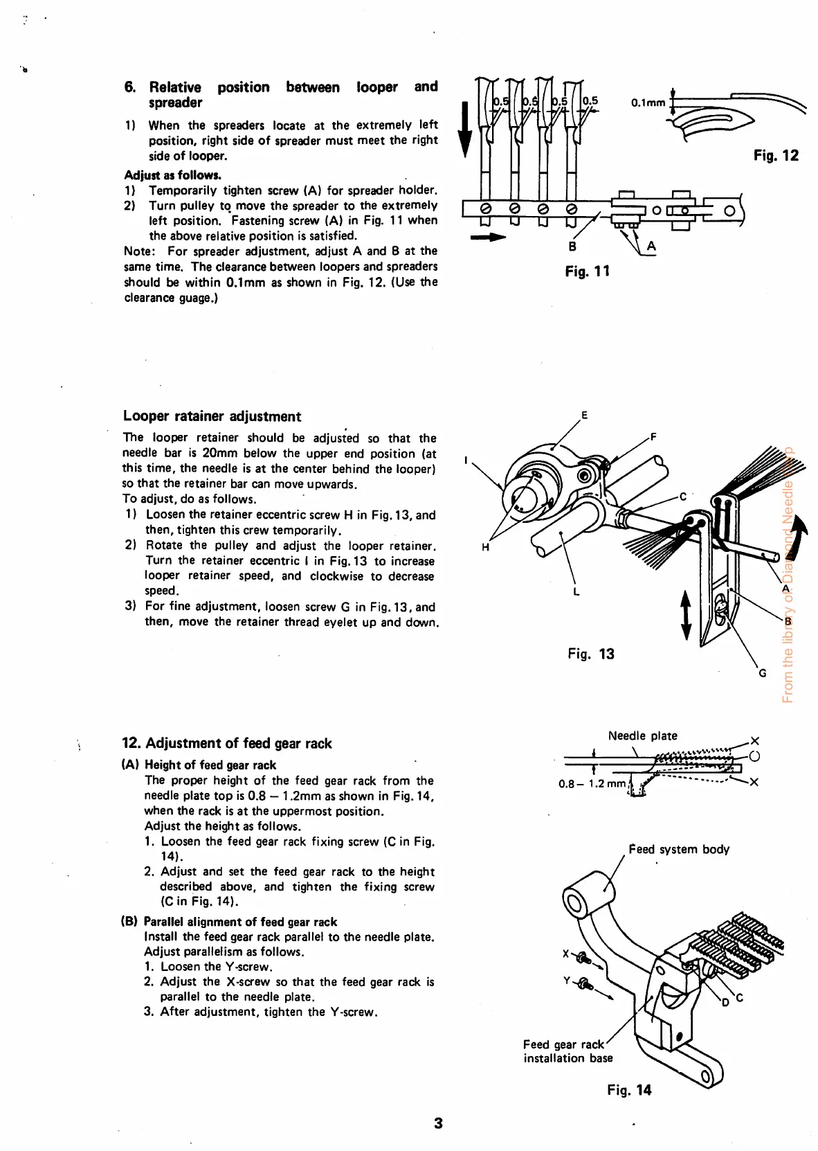 1. Loosen the feed gear rack fixing screw (C in Fig.