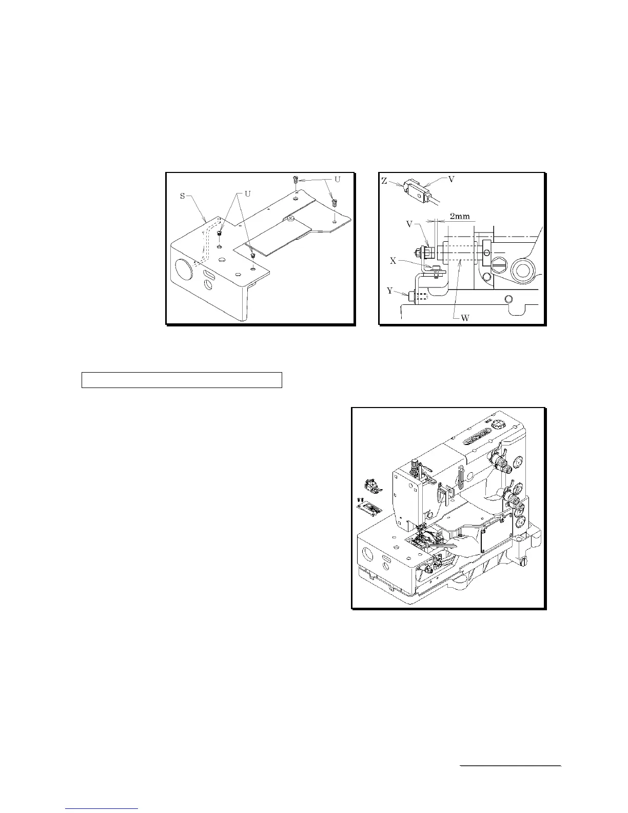 adjust the clearance at 2mm between the looper shaft (W) and the proximity sensor