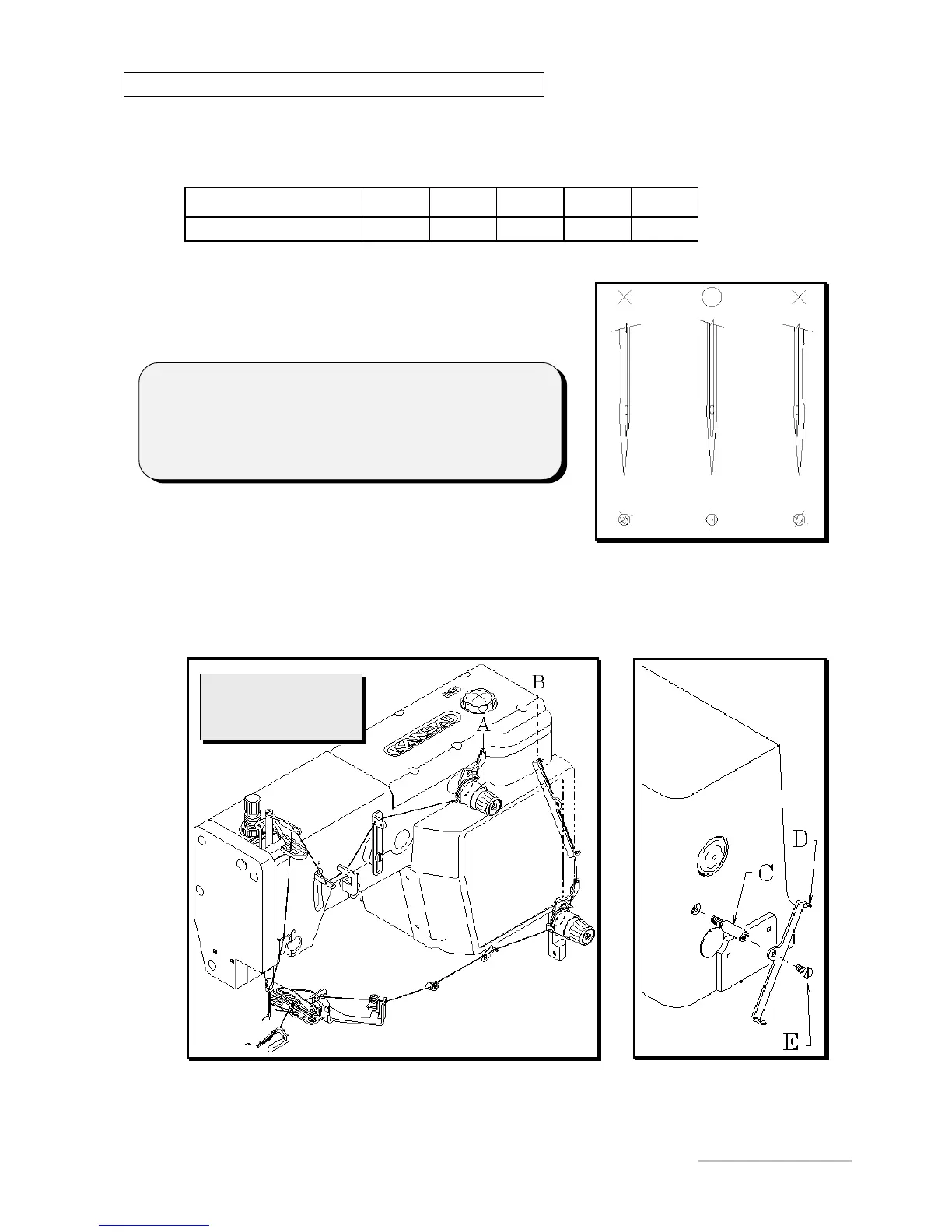 may cause skip stitching, thread breakage and/or uneven stitch formation.