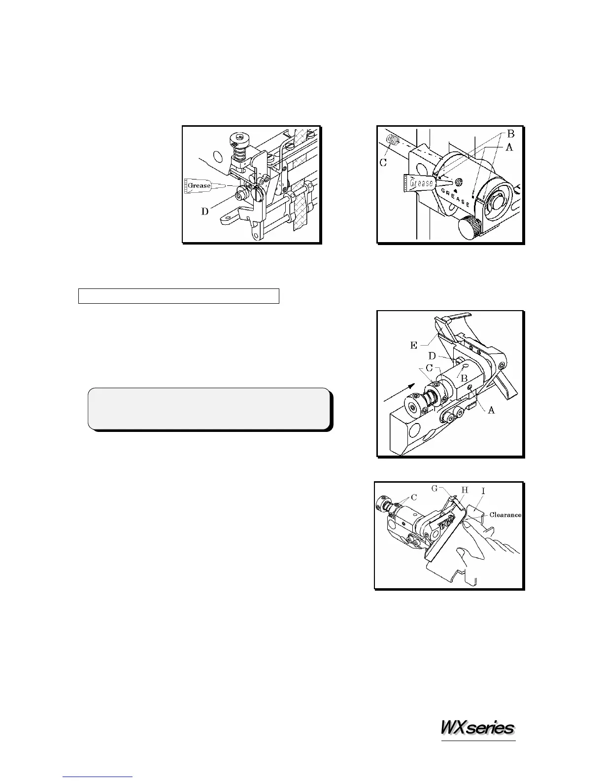 Remove screw D and grease the bearing.