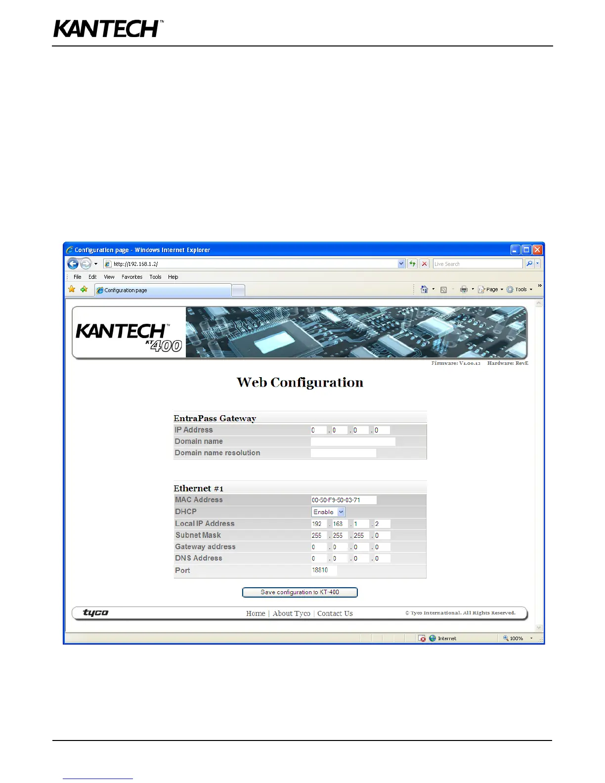 Configuring the KT-400 Ethernet Four-Door Controller with the Web