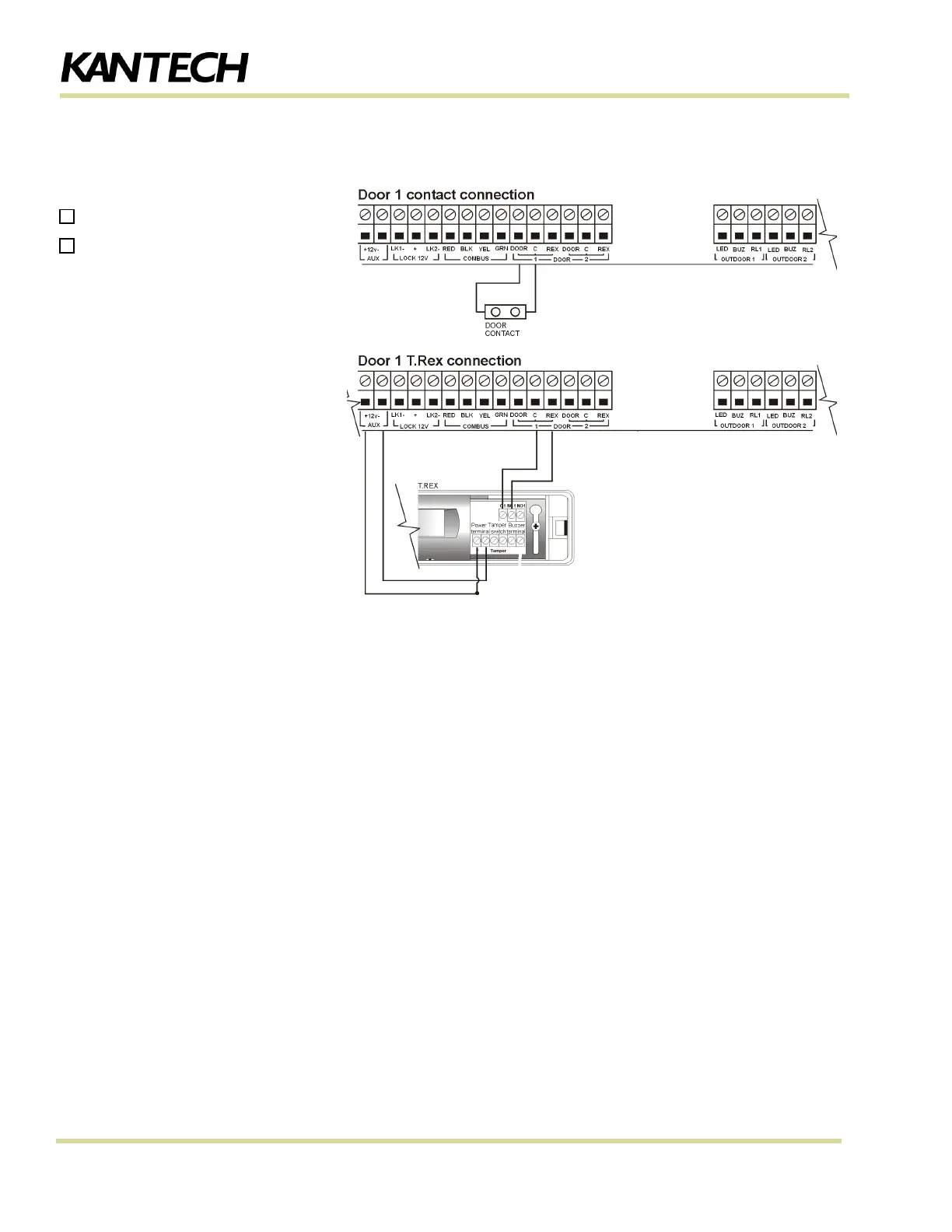 1 LED & BUZ” are used for the first door and “OUT DOOR 2 LED & BUZ” are used for the second door.