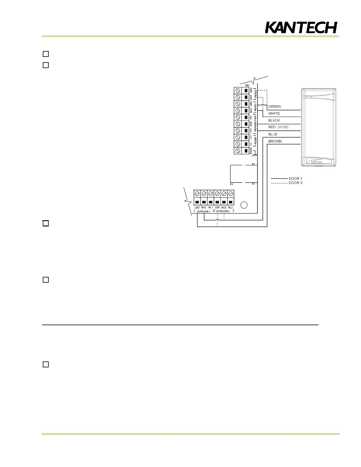 Add external relays for high voltage devices (optional - Kantech # KT-RM1).