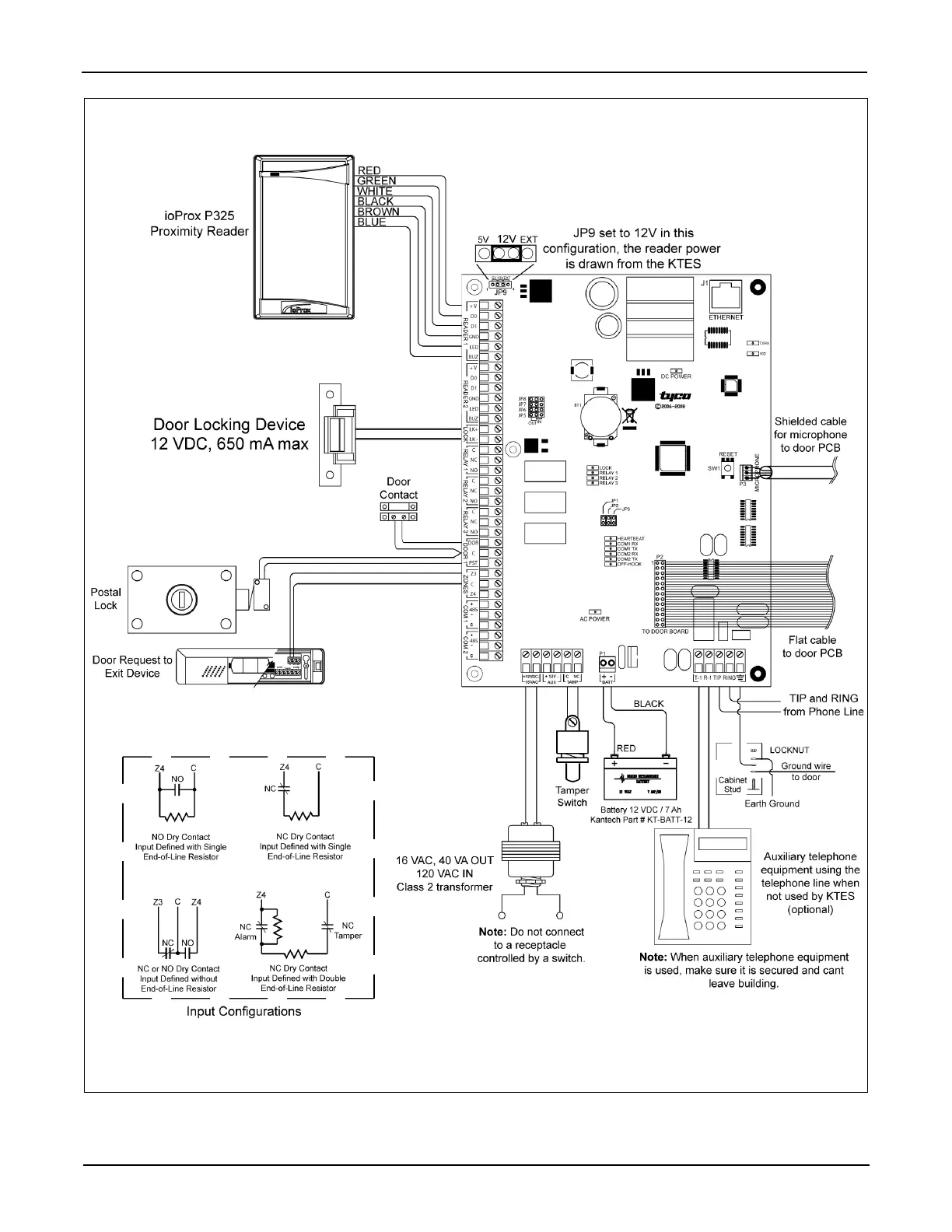 Figure 10: KTES Wiring Example with Reader (Stand Alone Application) - North America
