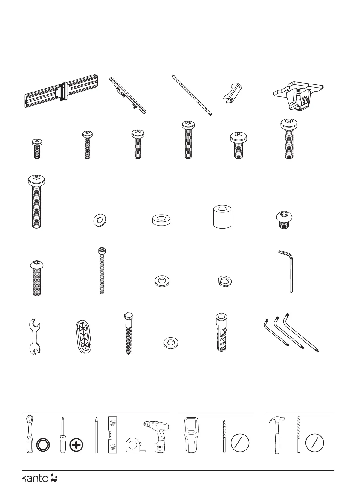 Kanto CM600SG - Supplied Parts and Hardware; Supplied Parts Identification; Required Tools for Installation