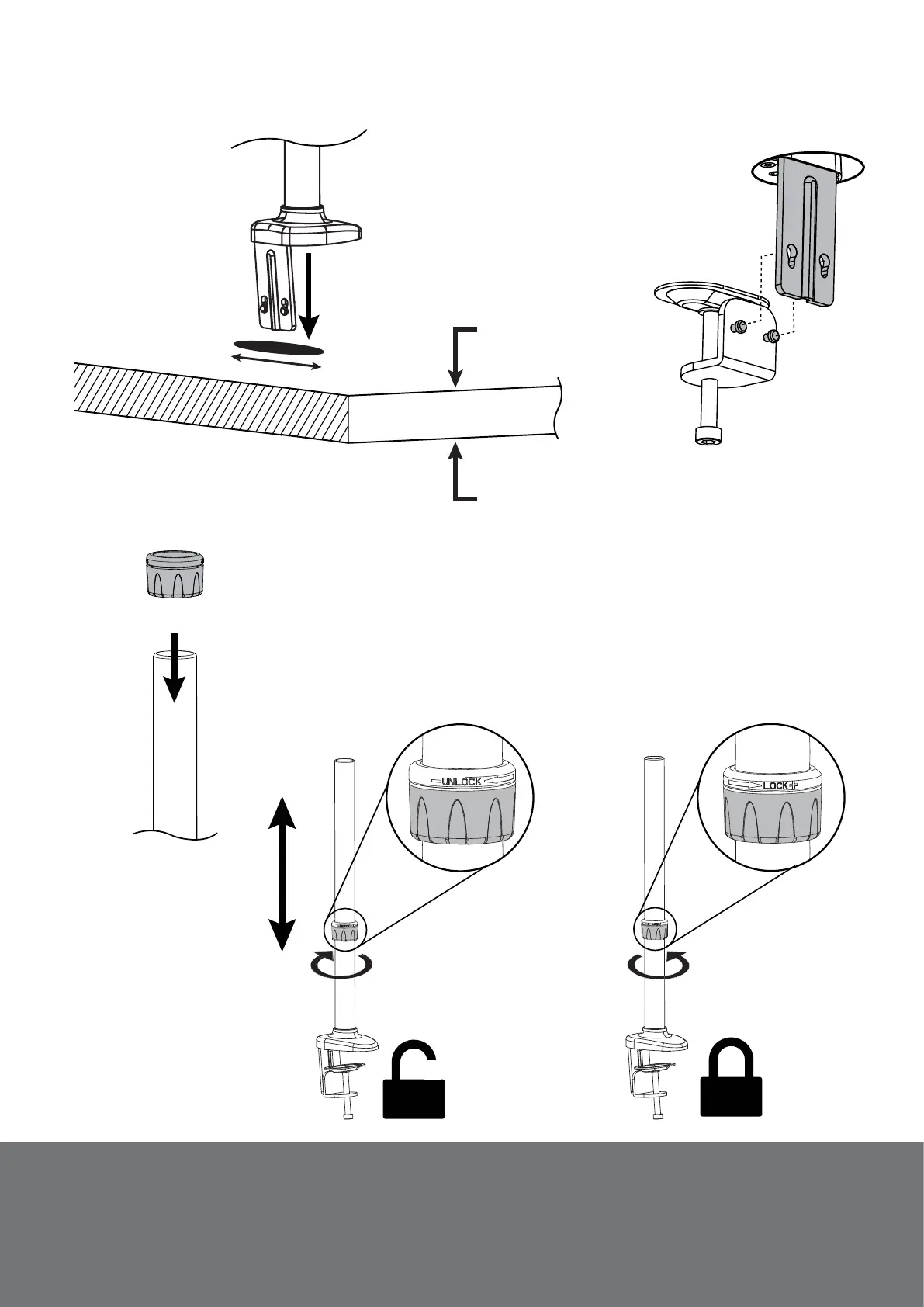 Kanto DM1000 - Grommet Mounting and Height Adjustment; Grommet Installation Procedure; Height Adjustment and Locking