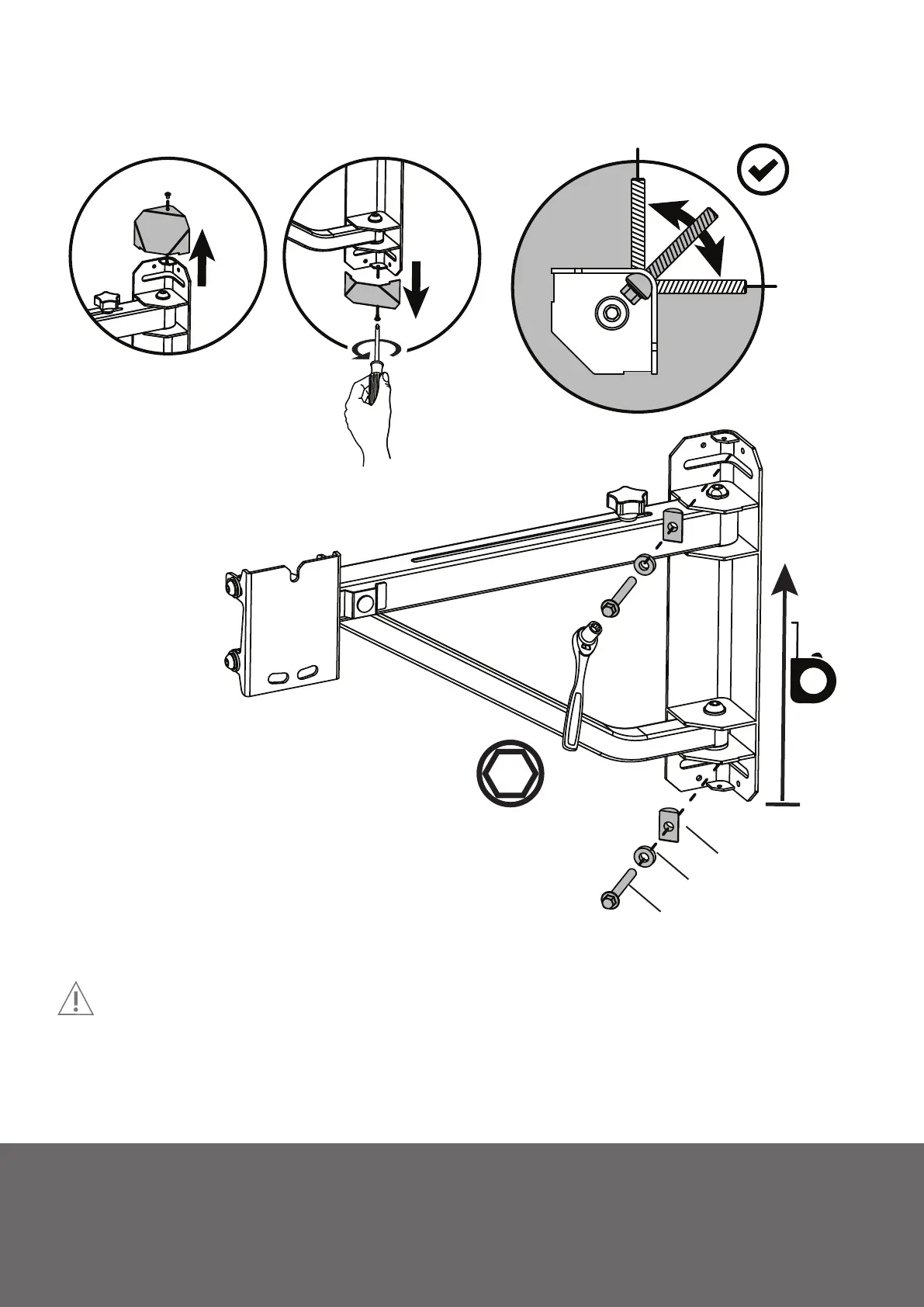 Assurez-vous que la surface porteuse supporte la limite de poids mentionnée dans les avertissements de précaution en bas de la page deux. Serrez les vis tire-fond