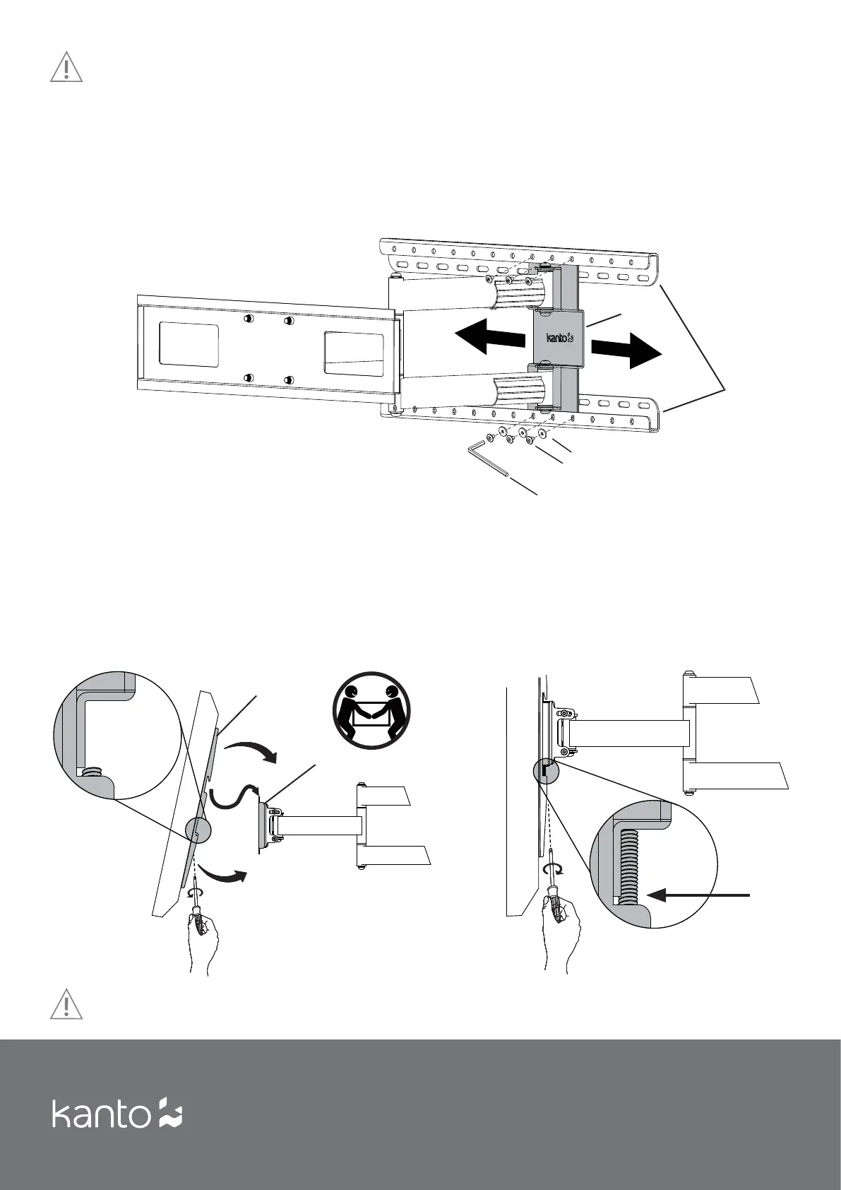 to the Wall Plate, use two people to lift the TV into position and hook the TV Bracket Arms onto the Wall Plate, as shown in
