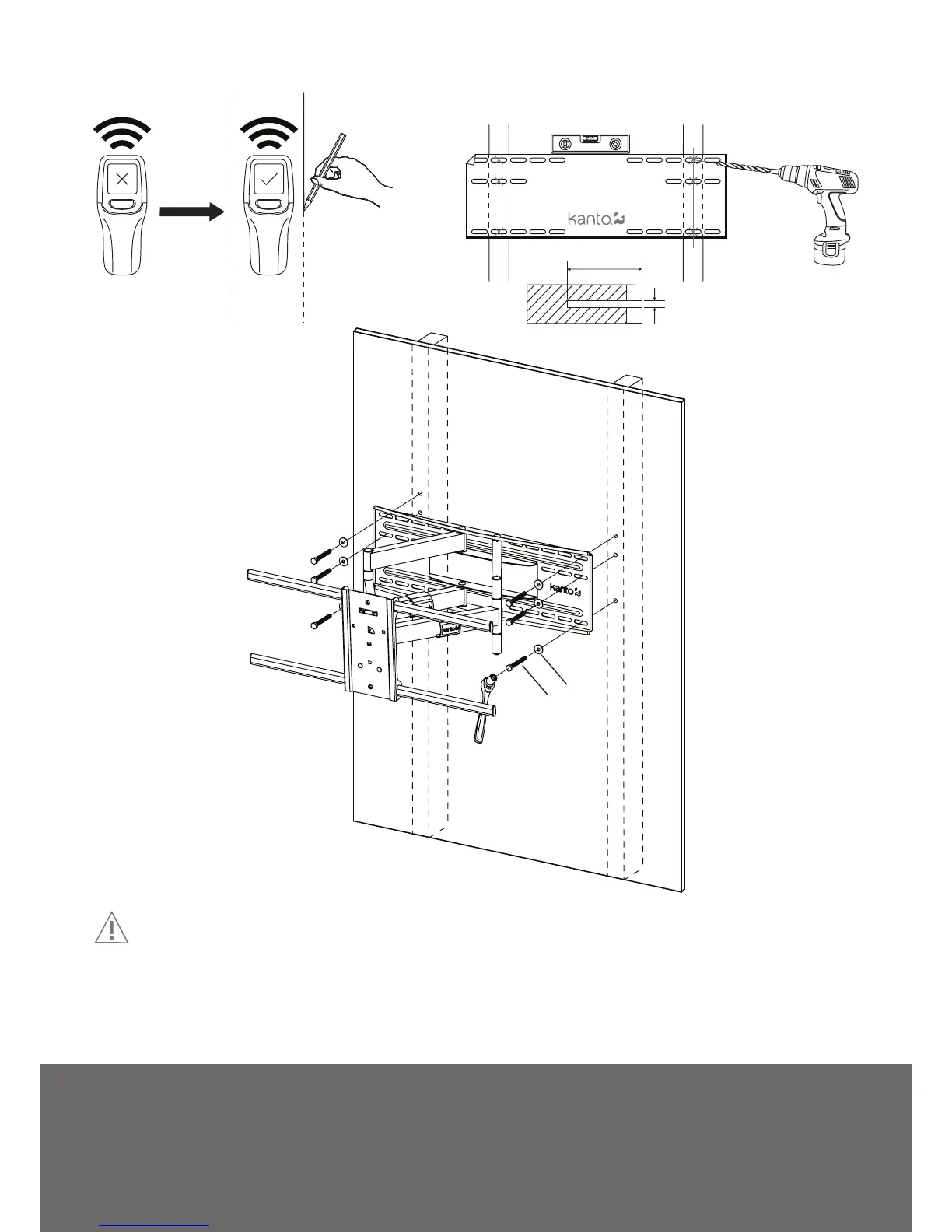 Make sure the supporting surface will support the load limits outlined in the caution on page two. Tighten Lag Bolts until the Wall Plate