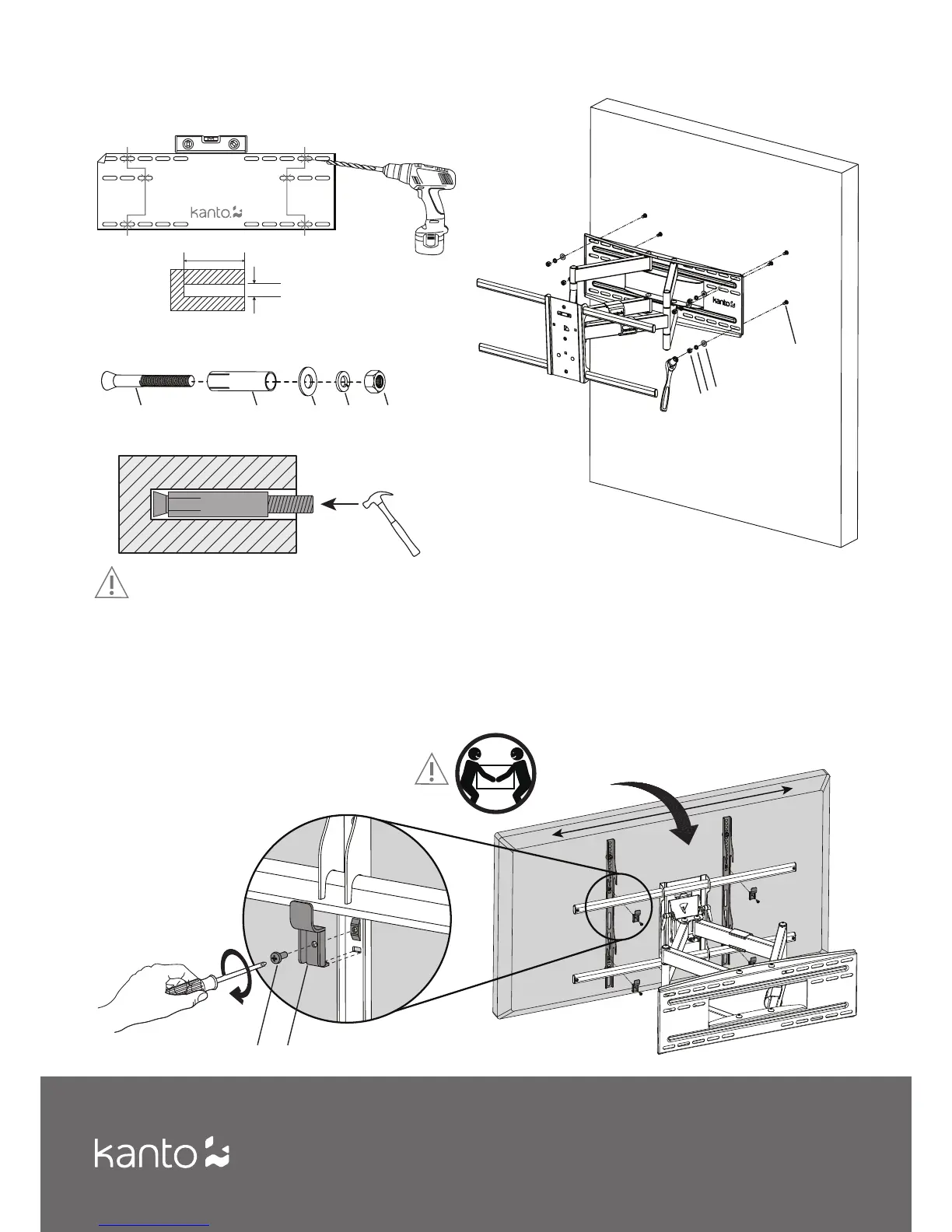 Assurez-vous que le mur en béton ou en brique est d’au moins 3,5” d’épaisseur. Assurez-vous que l’ancre est complètement ras avec la surface du béton, même