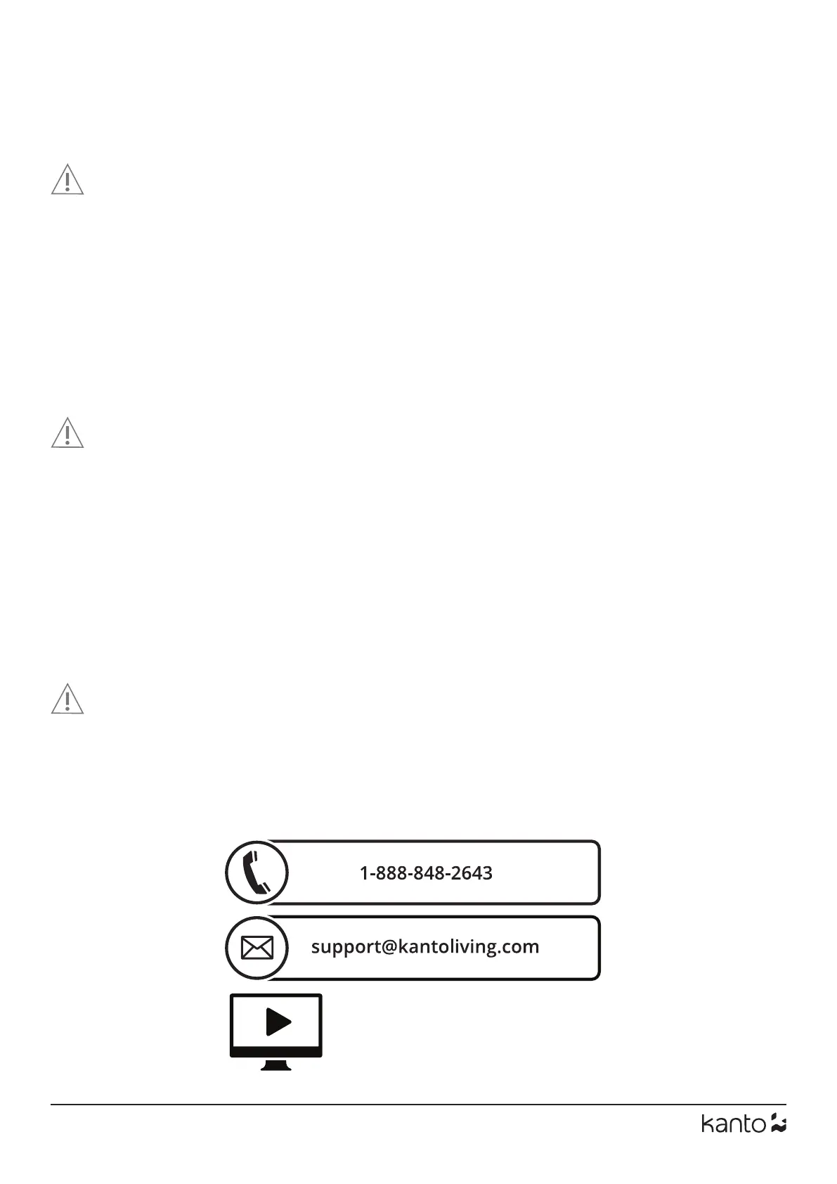 defectuosas o faltantes. No utilice piezas defectuosas. Kanto no puede ser responsable por daños a la propiedad o lesiones