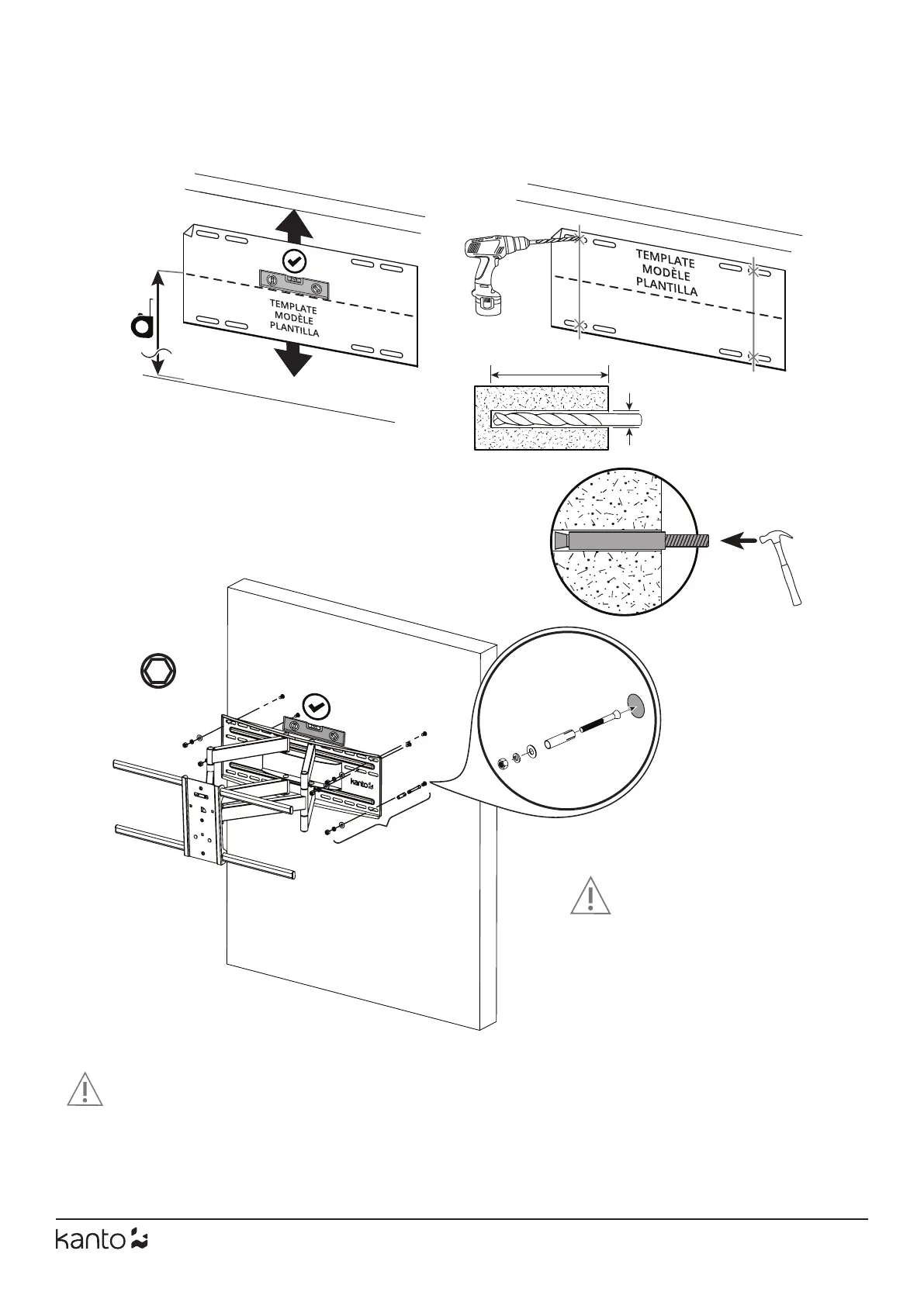 Assurez-vous que le mur en béton ou en brique est d’au moins 4” d’épaisseur. Assurez-vous que l’ancre est complètement ras avec la surface du béton,