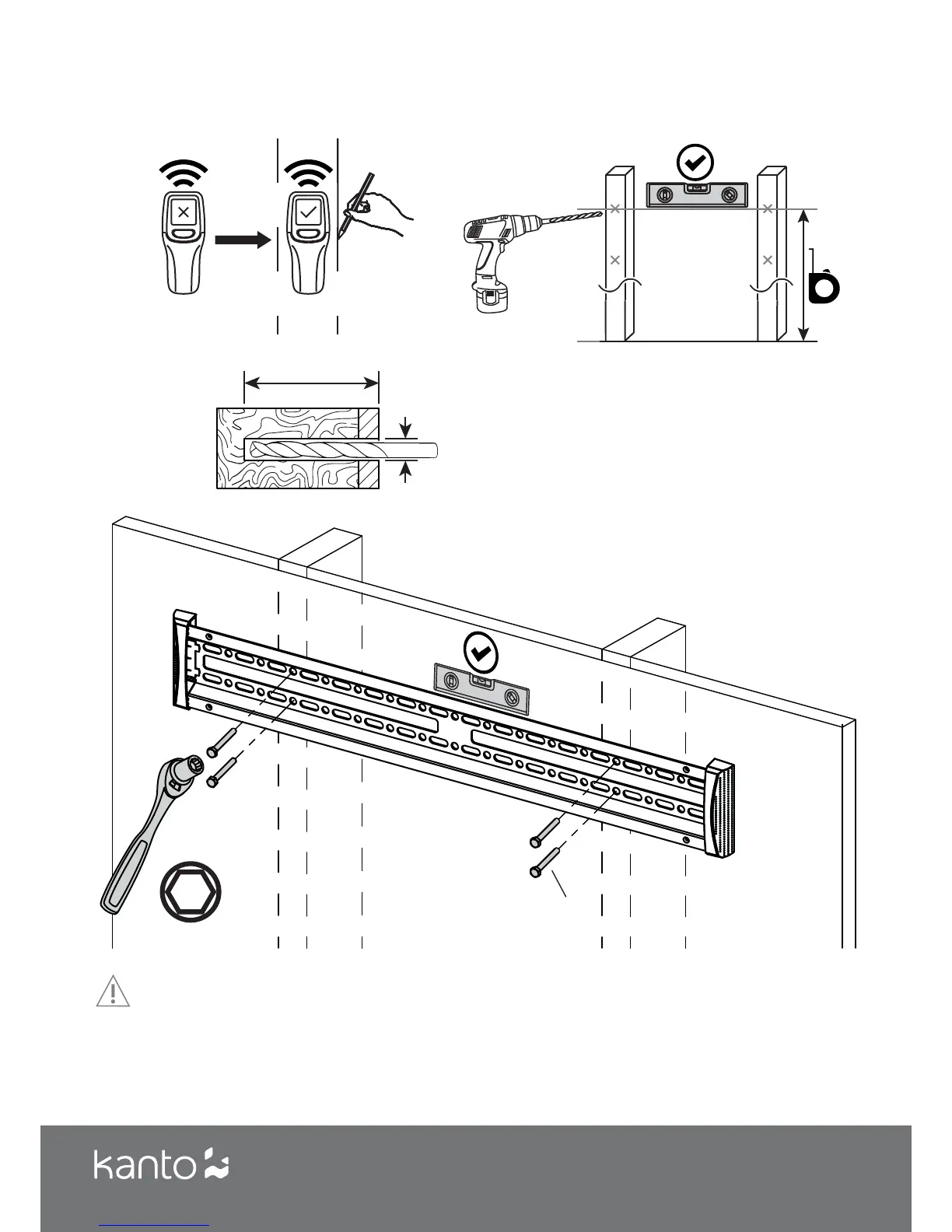 Assurez-vous que la surface porteuse supporte la limite de poids mentionnée dans les avertissements de précaution en bas de la page deux. Serrez les vis tire-fond