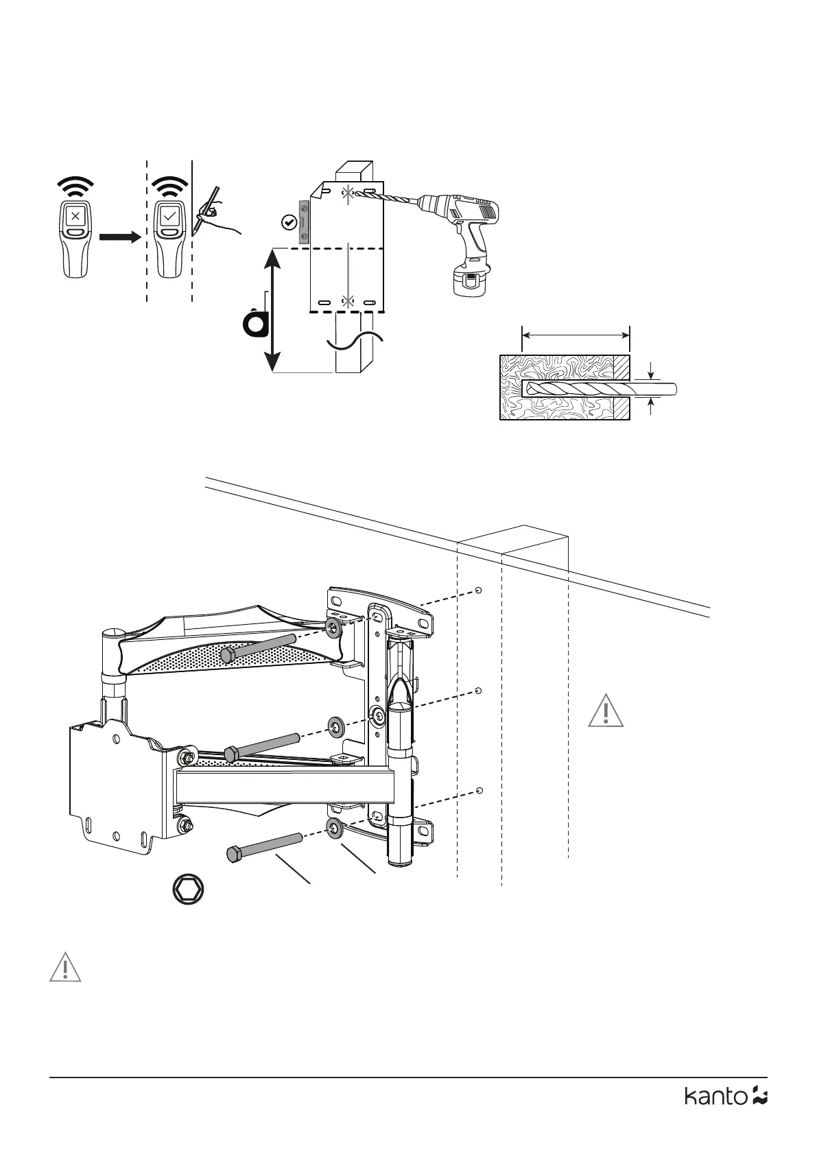 Assurez-vous que la surface porteuse supporte la limite de poids mentionnée dans les acertissements de précaution en bas de la page deux. Serrez les vis tire-