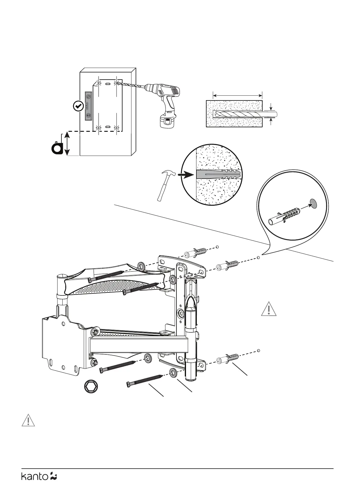 Assurez-vous que le mur en béton ou en brique est d’au moins 4” d’épaisseur. Assurez-vous que l’ancre est complètement ras avec la surface du béton,