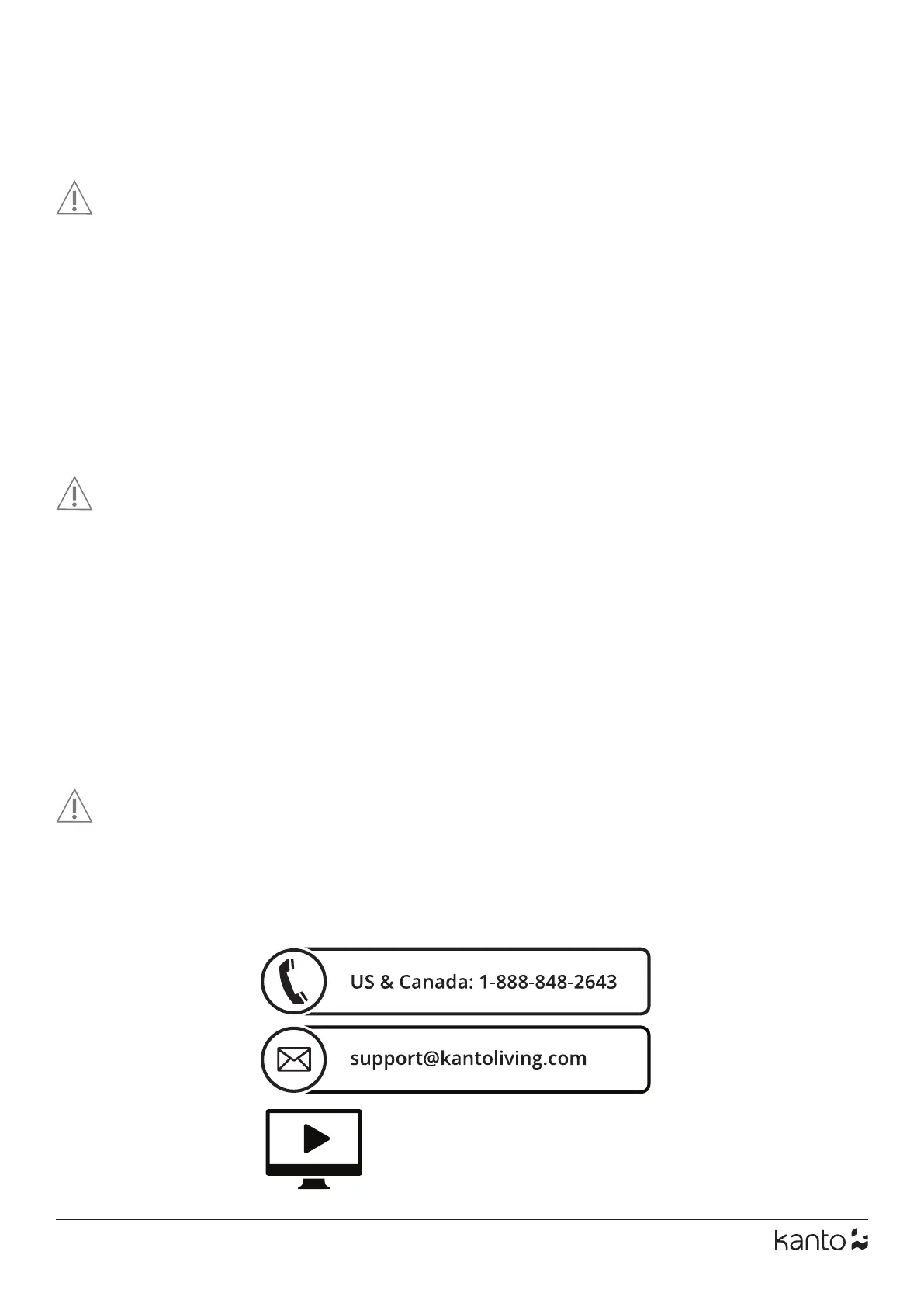 instalación inestable, lo que podría causar lesiones. El piso en el que planea colocar el soporte Kanto debera ser capaz de