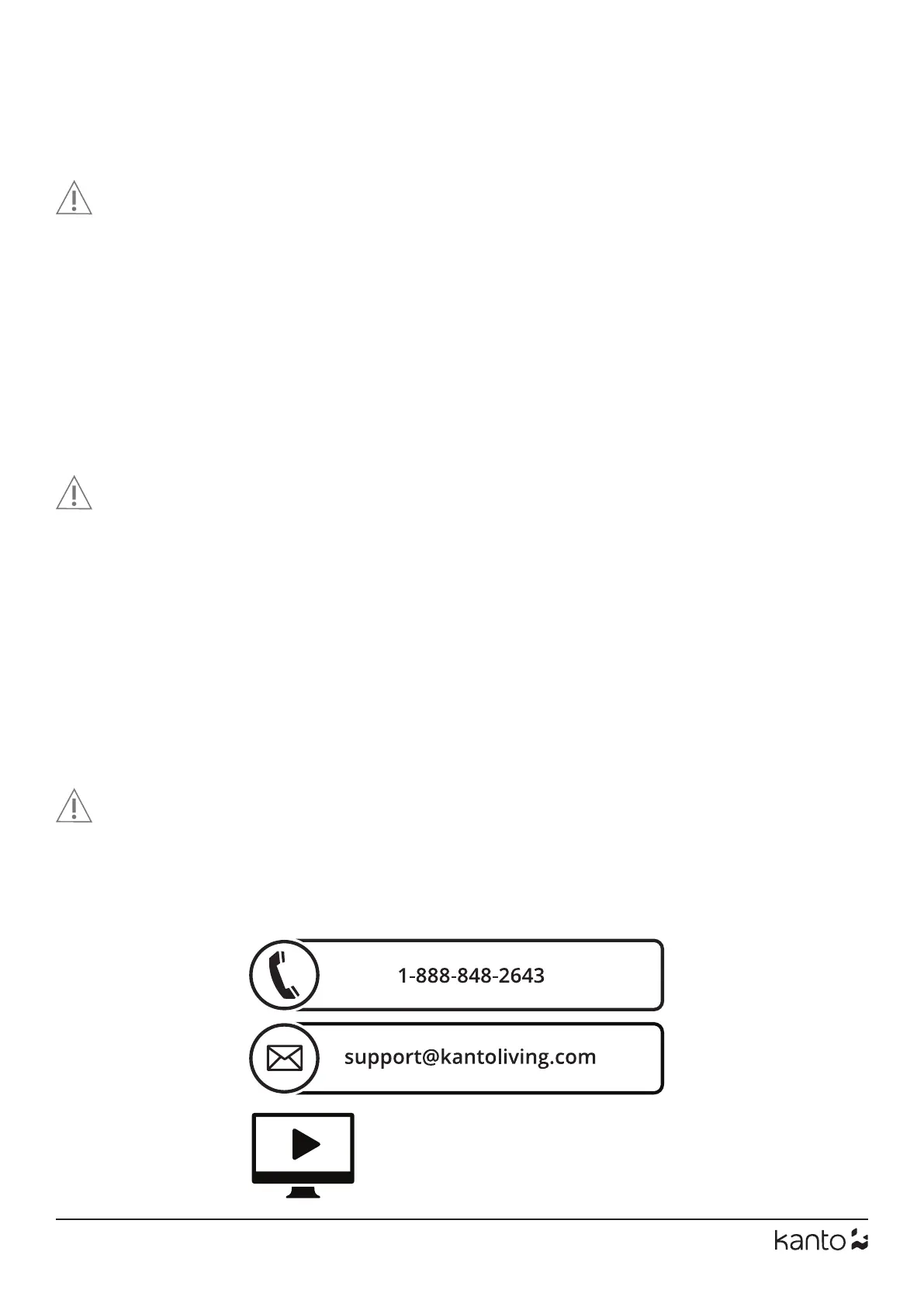 Do not use defective parts. Kanto cannot be liable for property damage or injury caused by incorrect mounting, incorrect assembly,