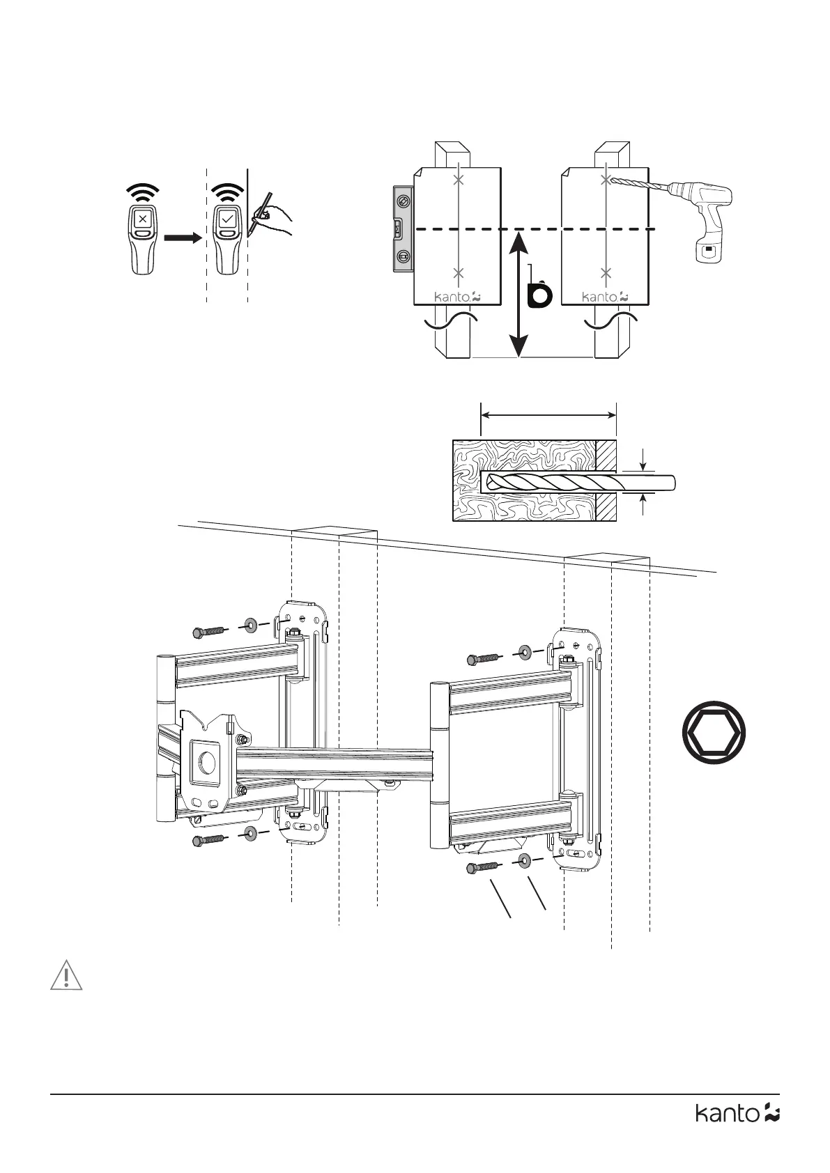 Assurez-vous que la surface porteuse supporte la limite de poids mentionnée dans les acertissements de précaution en bas de la page deux. Serrez les vis tire-
