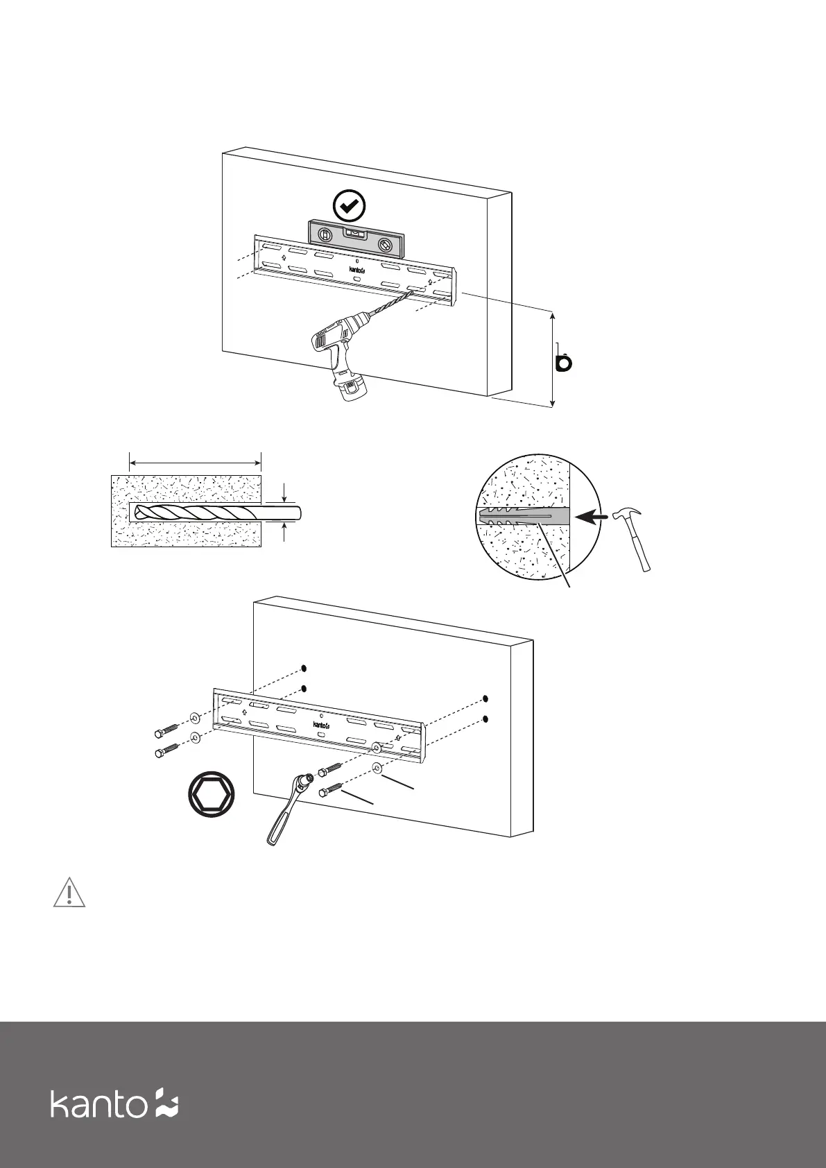 Assurez-vous que le mur en béton ou en brique est d’au moins 2,5” d’épaisseur. Assurez-vous que l’ancre est complètement ras avec la surface du béton,