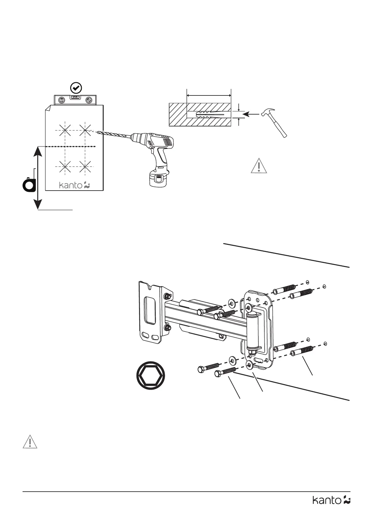 Assurez-vous que le mur en béton ou en brique est d’au moins 4” d’épaisseur. Assurez-vous que l’ancre est complètement ras avec la surface du béton,