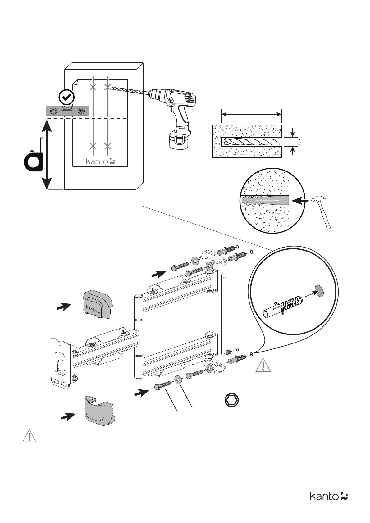 Assurez-vous que le mur en béton ou en brique est d’au moins 4” d’épaisseur. Assurez-vous que l’ancre est complètement ras avec la surface du béton,