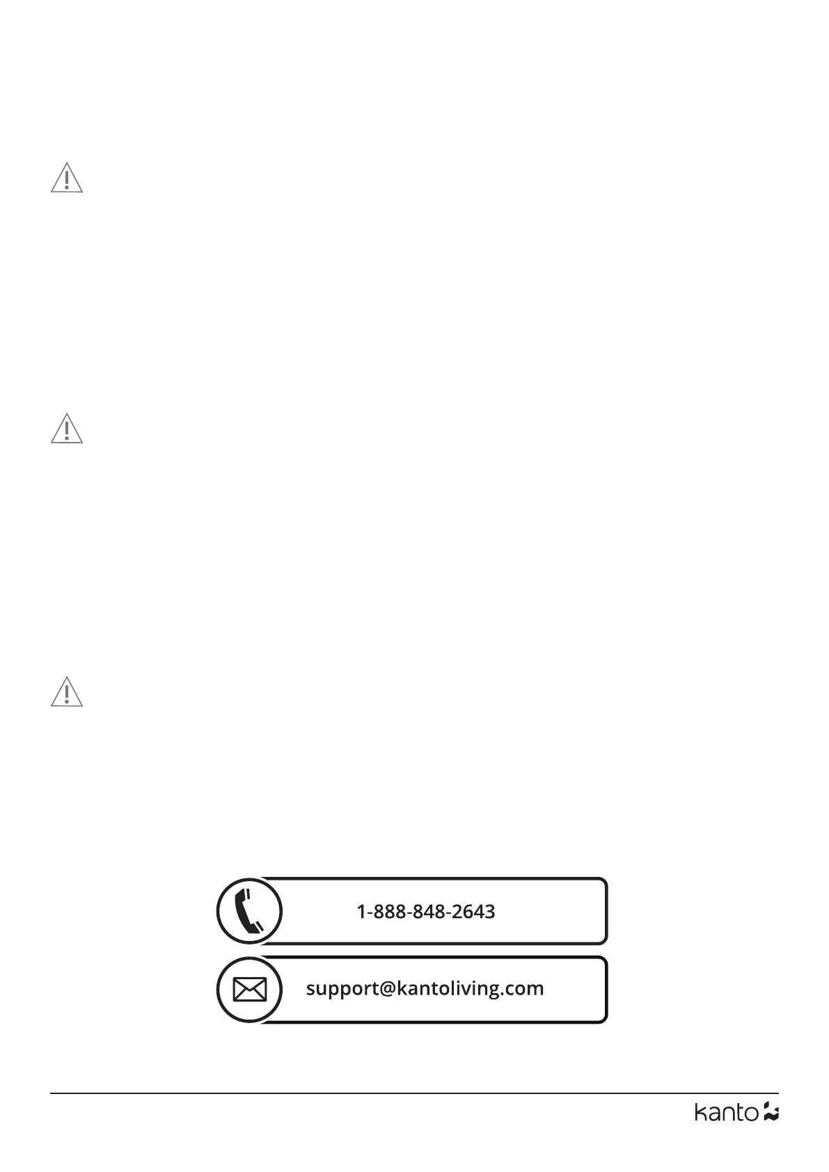 defectuosas o faltantes. No utilice piezas defectuosas. Kanto no puede ser responsable por daños a la propiedad o lesiones