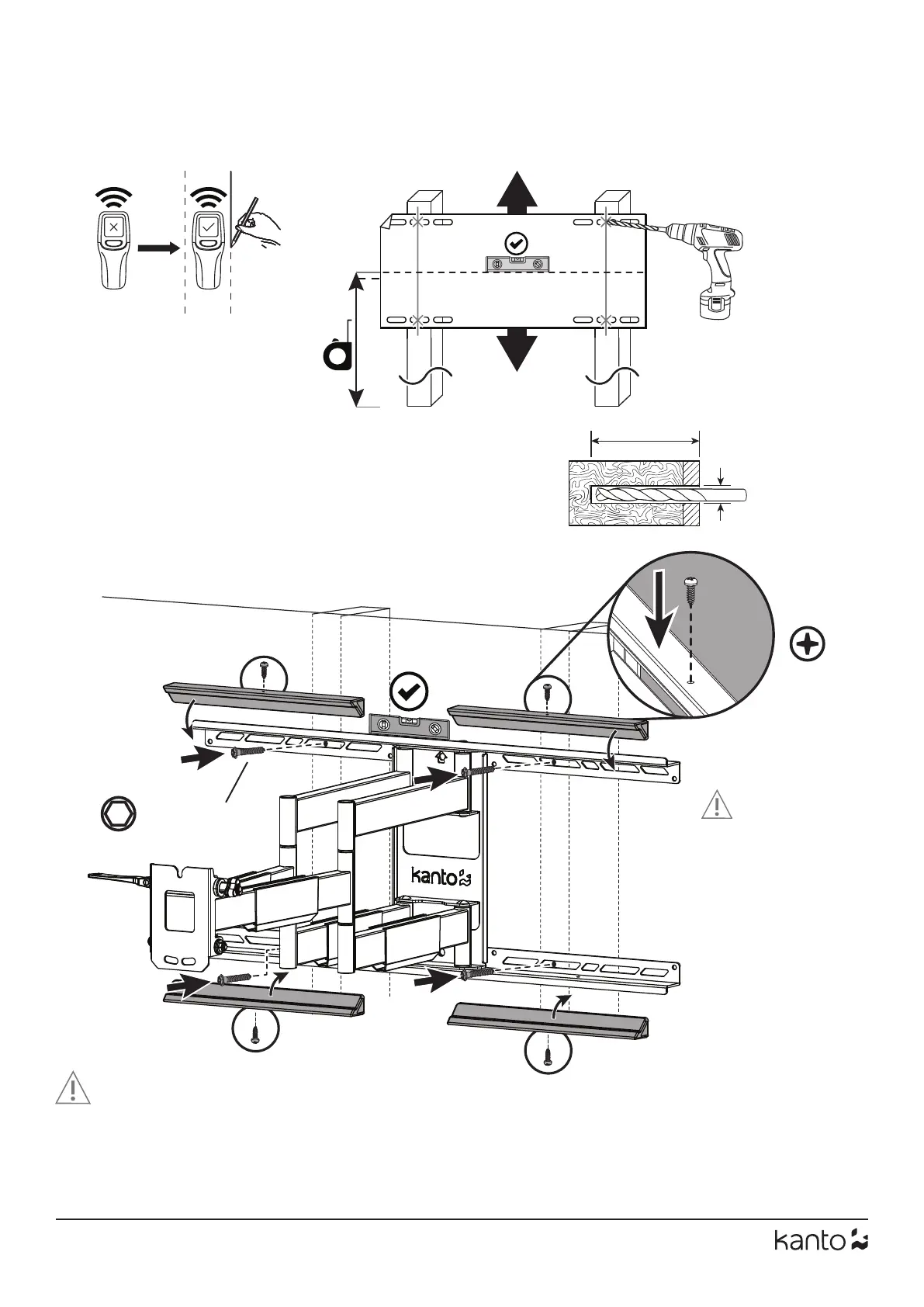 Assurez-vous que la surface porteuse supporte la limite de poids mentionnée dans les acertissements de précaution en bas de la page deux. Serrez les vis tire-