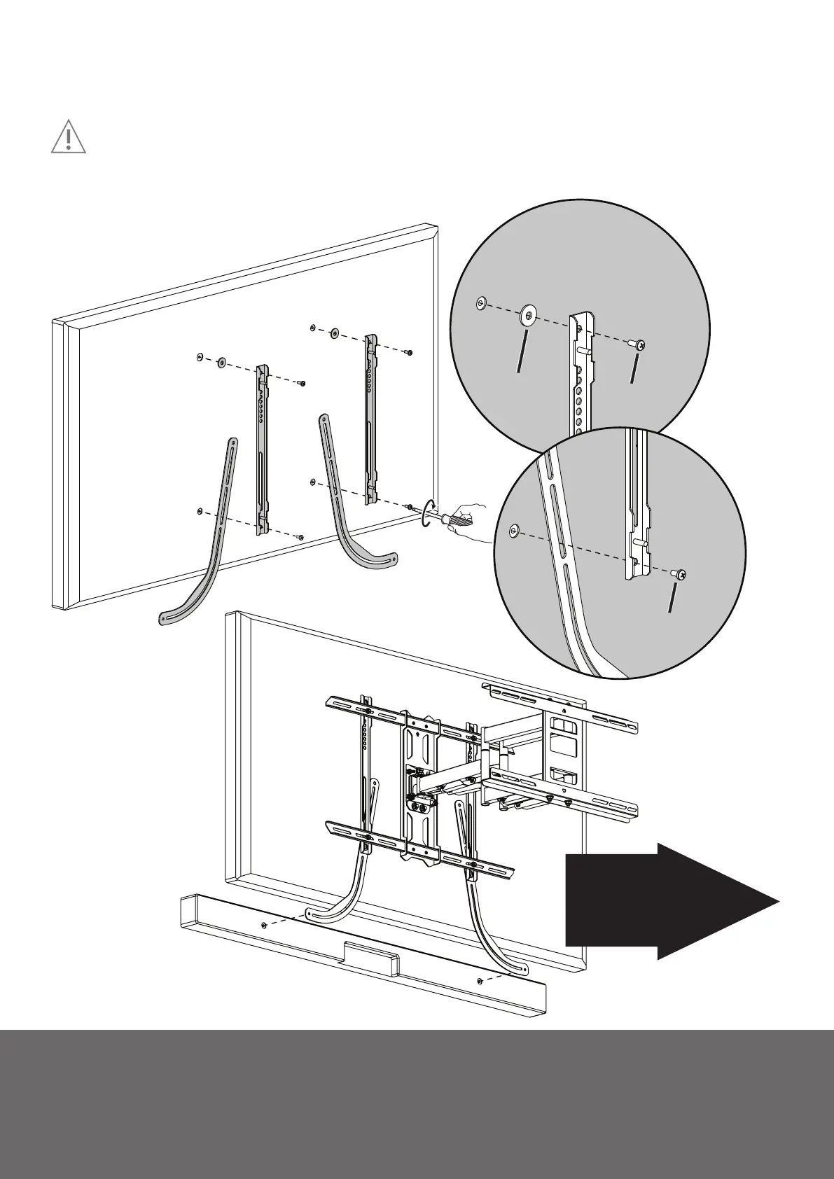 B. Below a wall-mounted TV / En-dessous d’un télé xé au
