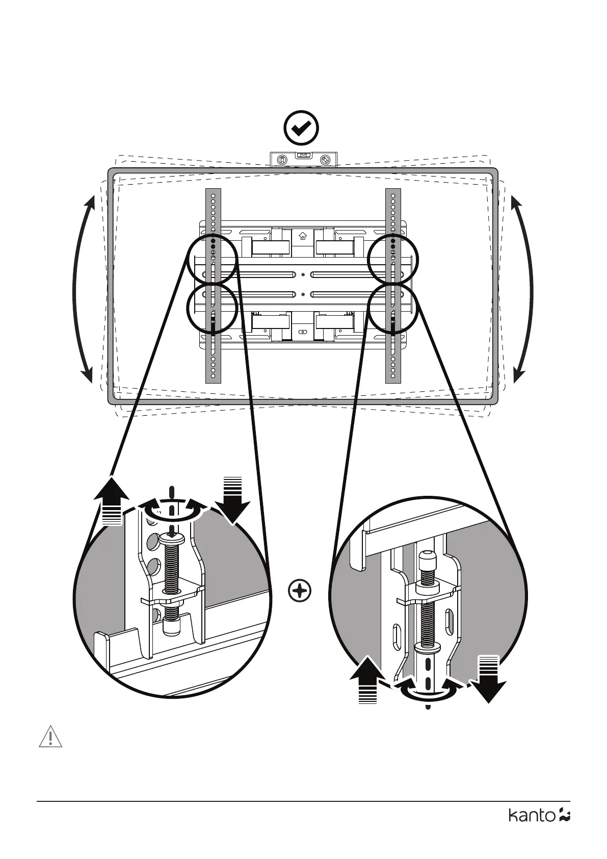 As you adjust the top leveling screw, you will need to adjust the lower locking screw. Be sure to keep locking screw engaged on the horizontal plate especially