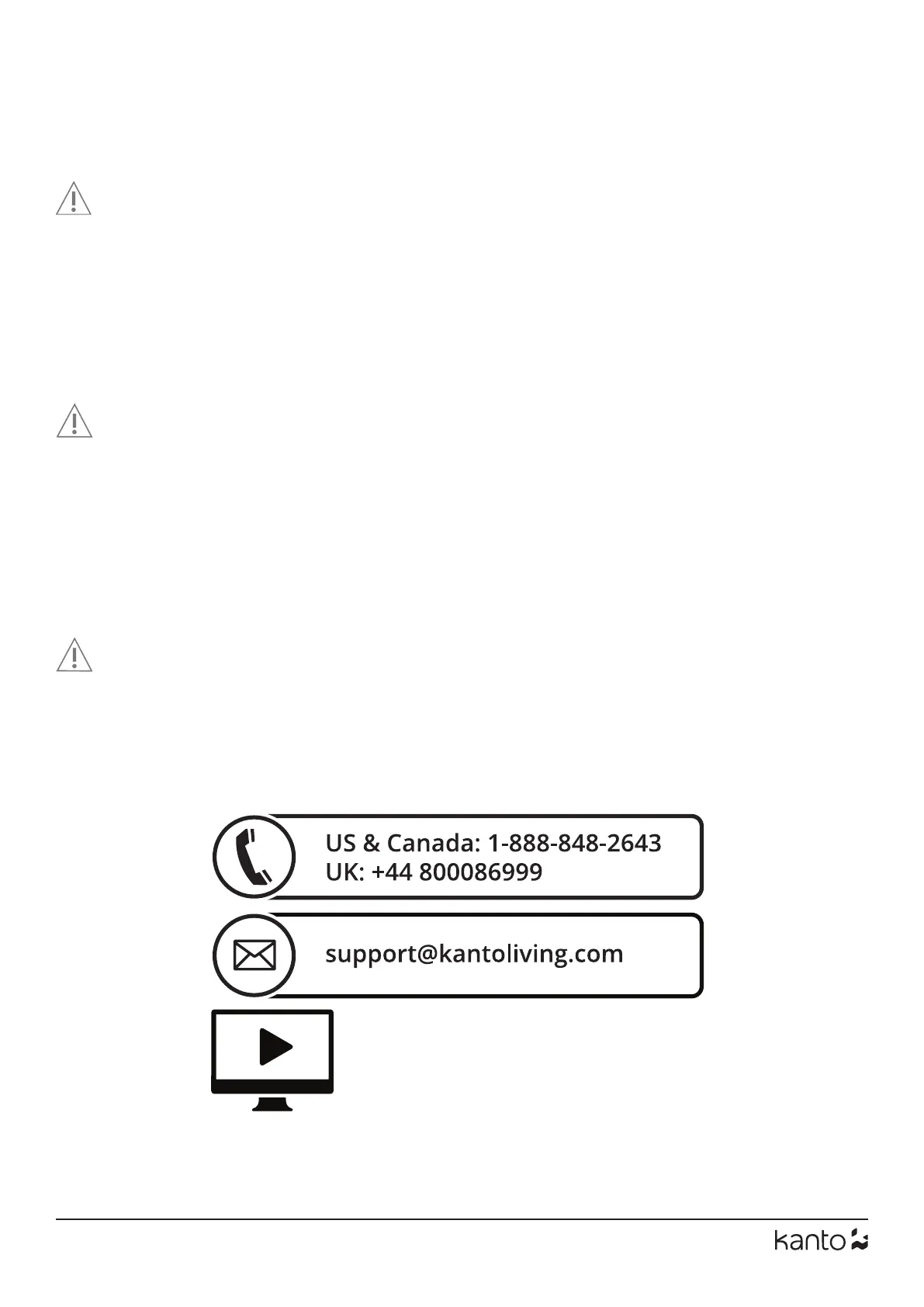 Do not use defective parts. Kanto cannot be liable for property damage or injury caused by incorrect mounting, incorrect assembly,