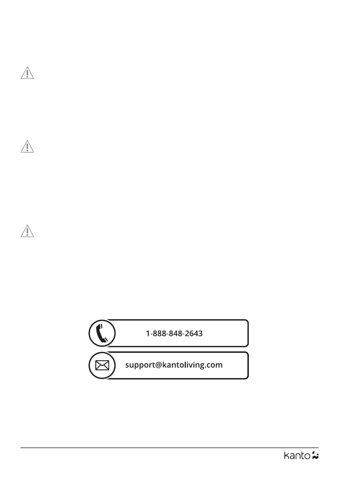 Do not use defective parts. Kanto cannot be liable for property damage or injury caused by incorrect mounting, incorrect assembly,