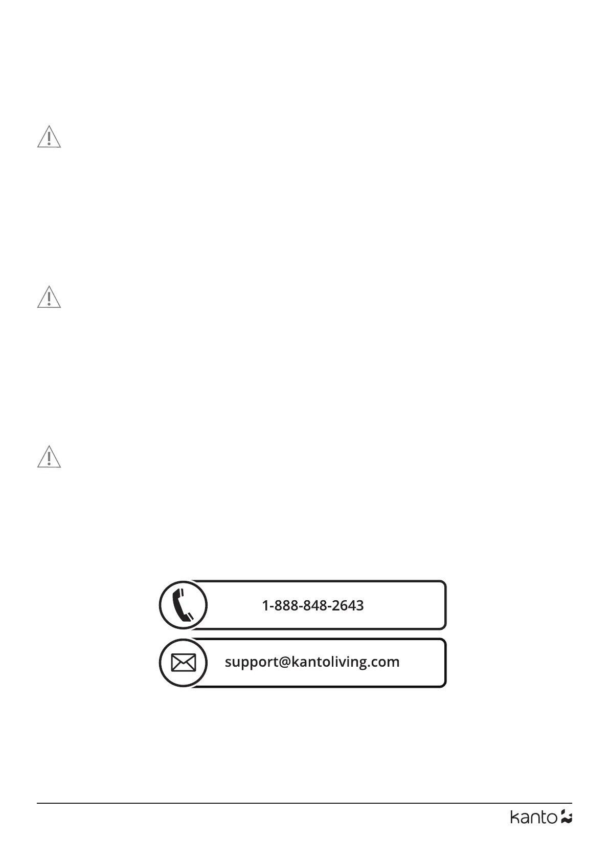 Do not use defective parts. Kanto cannot be liable for property damage or injury caused by incorrect mounting, incorrect assembly,