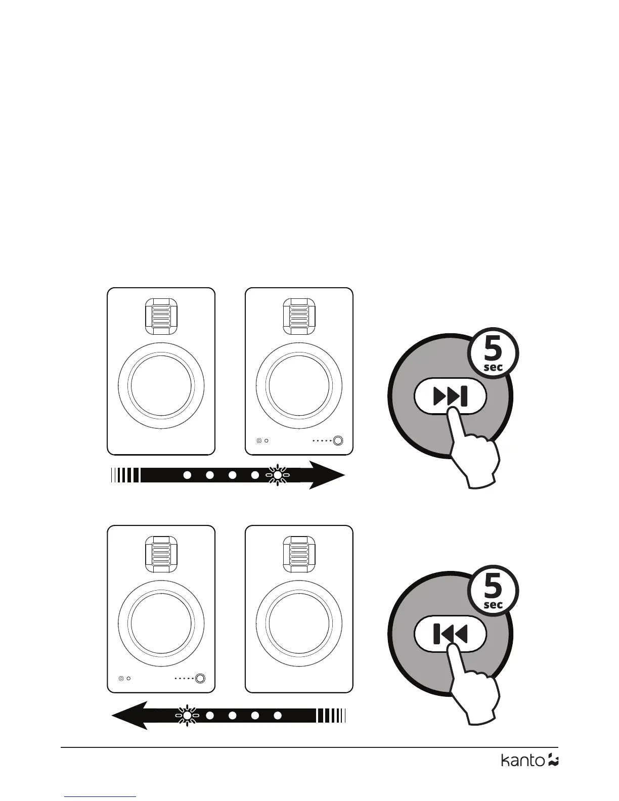 To use the active speaker on the right, press and hold the Next Track button for 5 seconds.