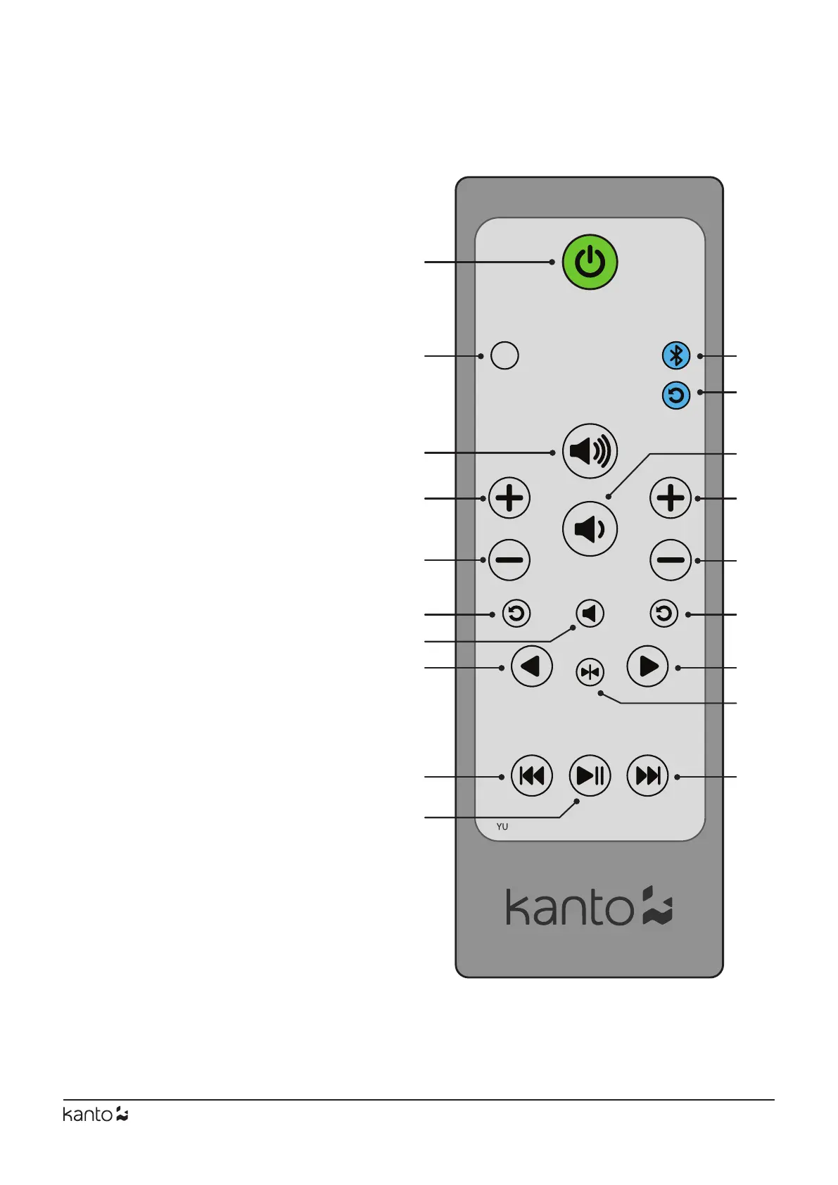 Install two supplied AAA batteries in the back of your YU remote. Remote Control functions are