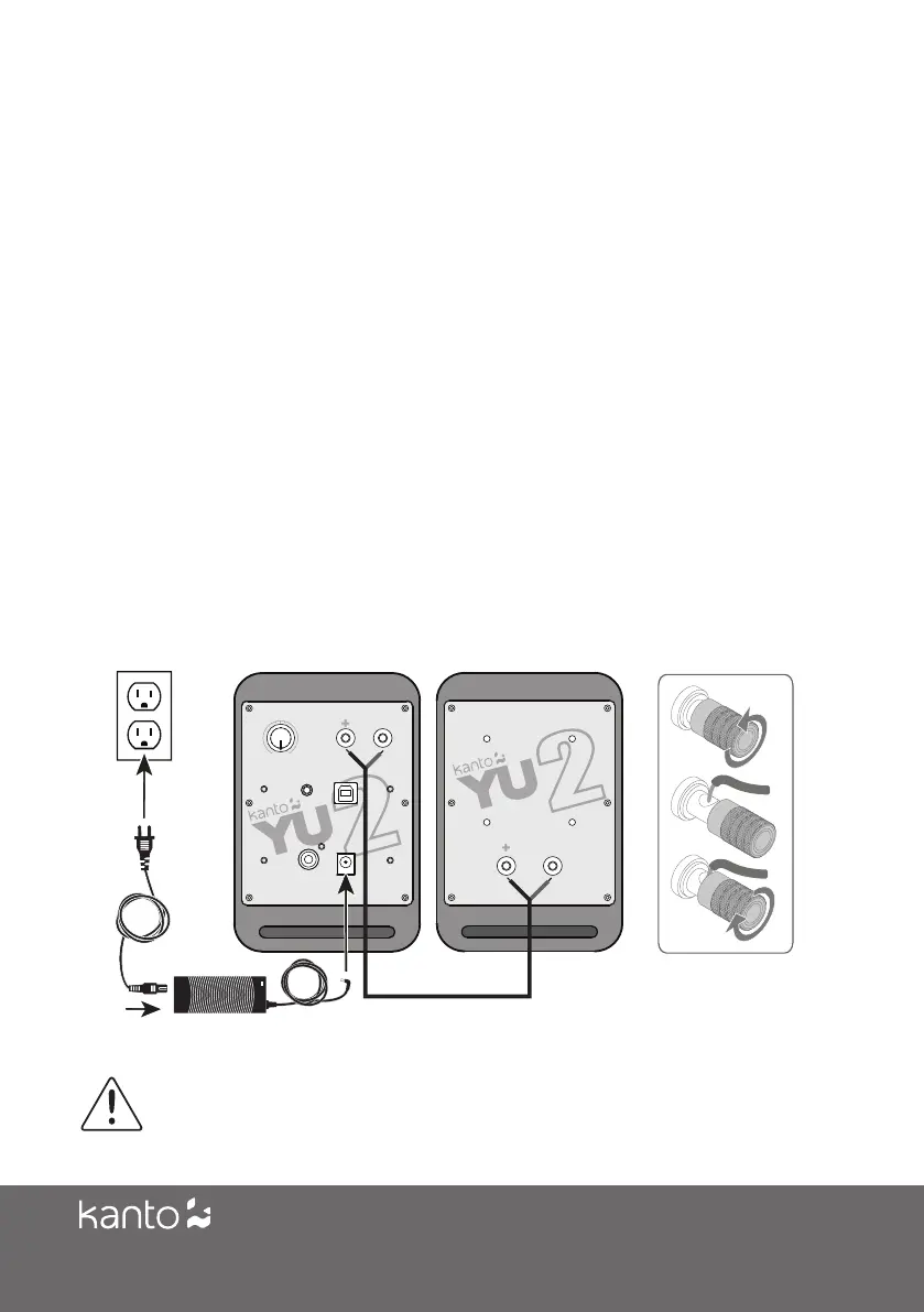 YU2 is a self-powered speaker system. Do not connect the speaker terminals to the speaker outputs of a stereo