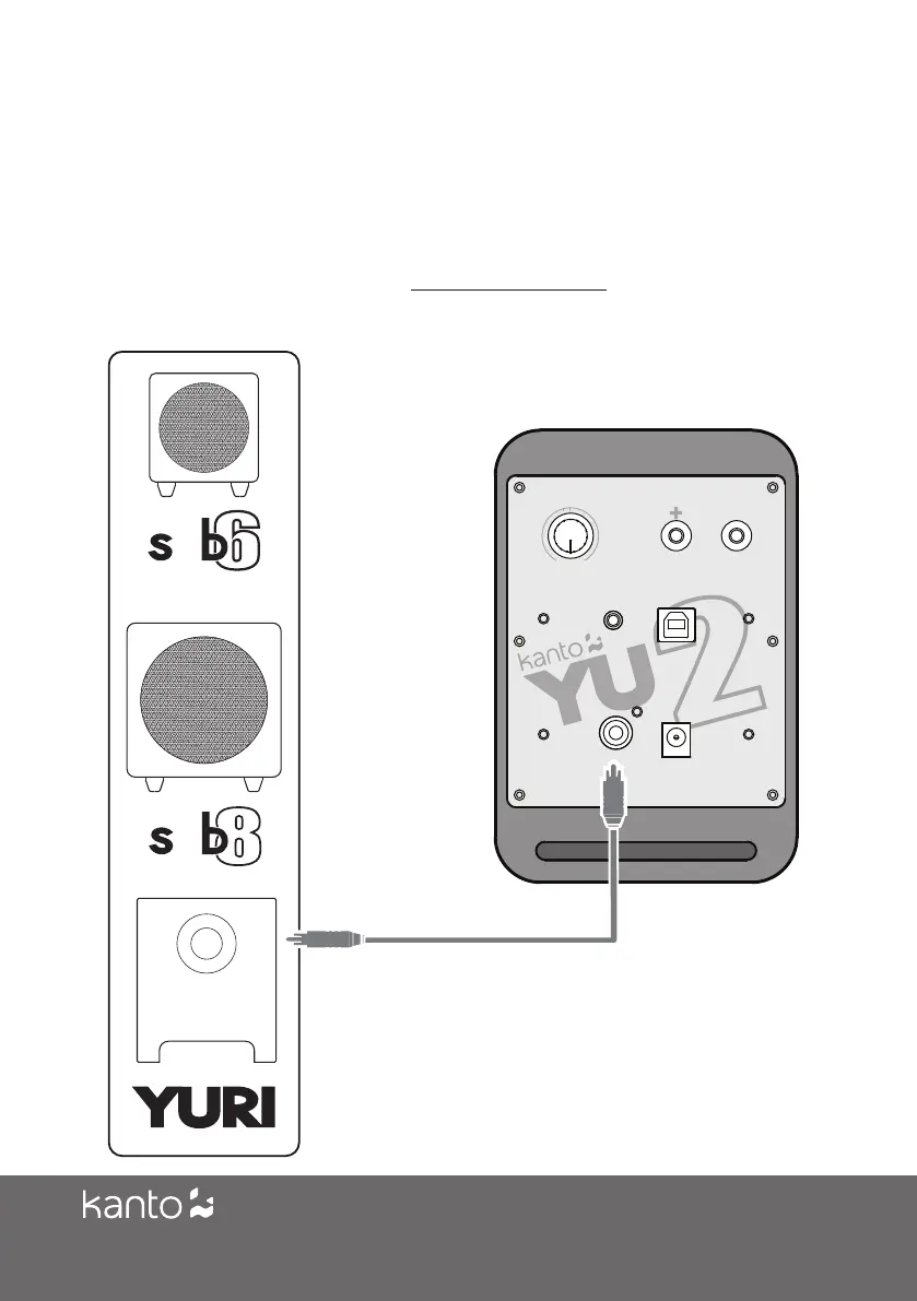 Simply connect a single RCA subwoofer cable from the SUB OUT connection on YU2 to the