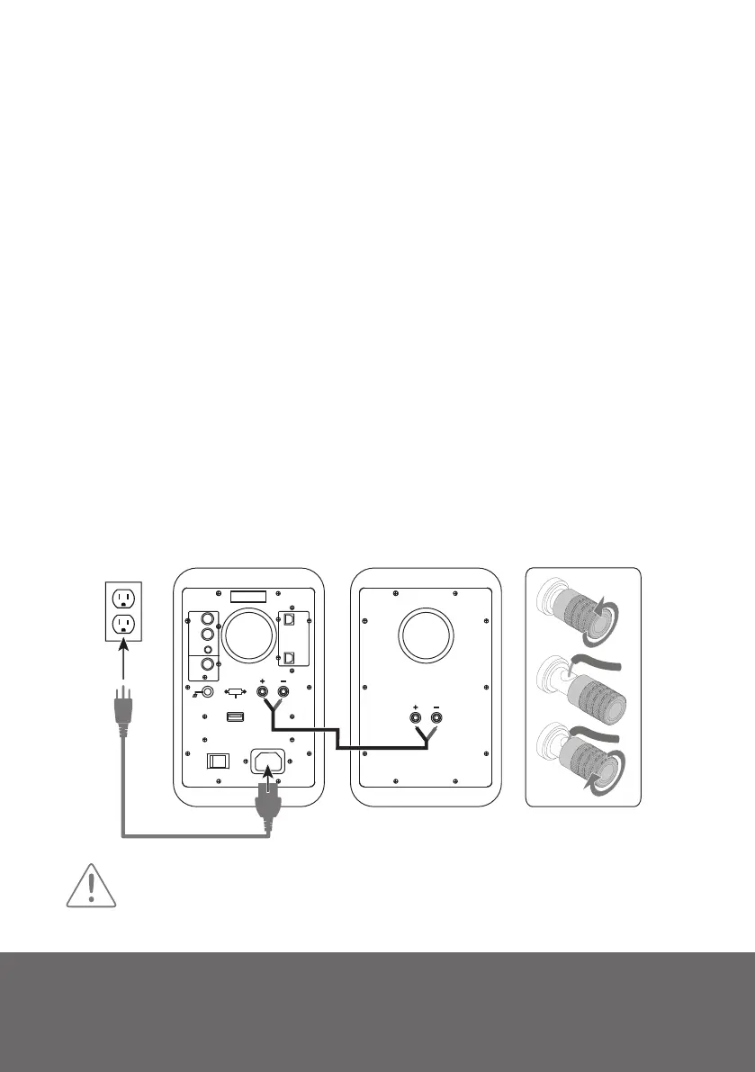 amplier. Damage may occur. Use only the power cord provided with the speakers.